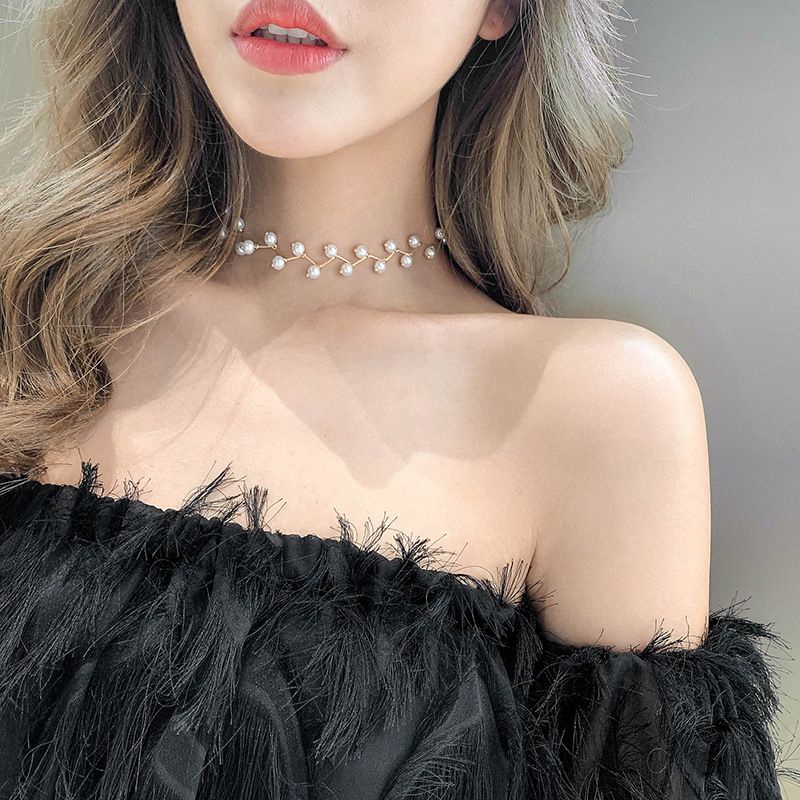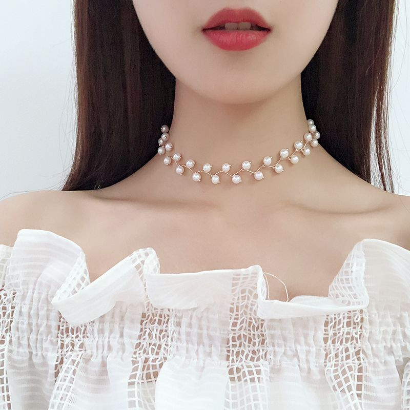 พร้อมส่ง สร้อยคอไข่มุก สีเงิน ทอง สไตล์เกาหลี