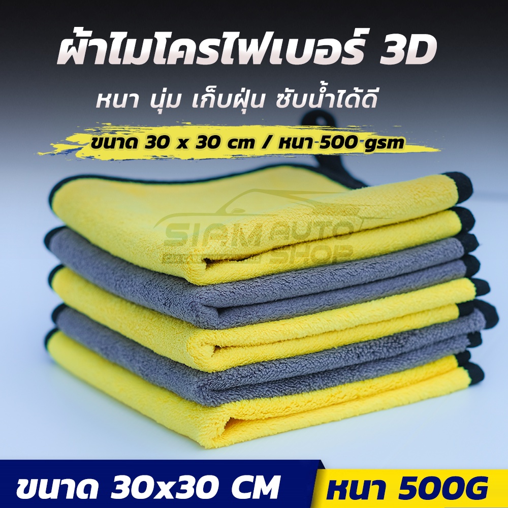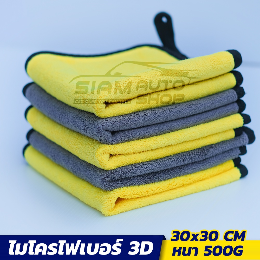Flash sale 1 บาท!! ผ้าเช็ดรถ ผ้าไมโครไฟเบอร์ 3D ขนาด 30x30 cm หนา 500G หนา นุ่ม เก็บฝุ่น ซับน้ำได้ดี