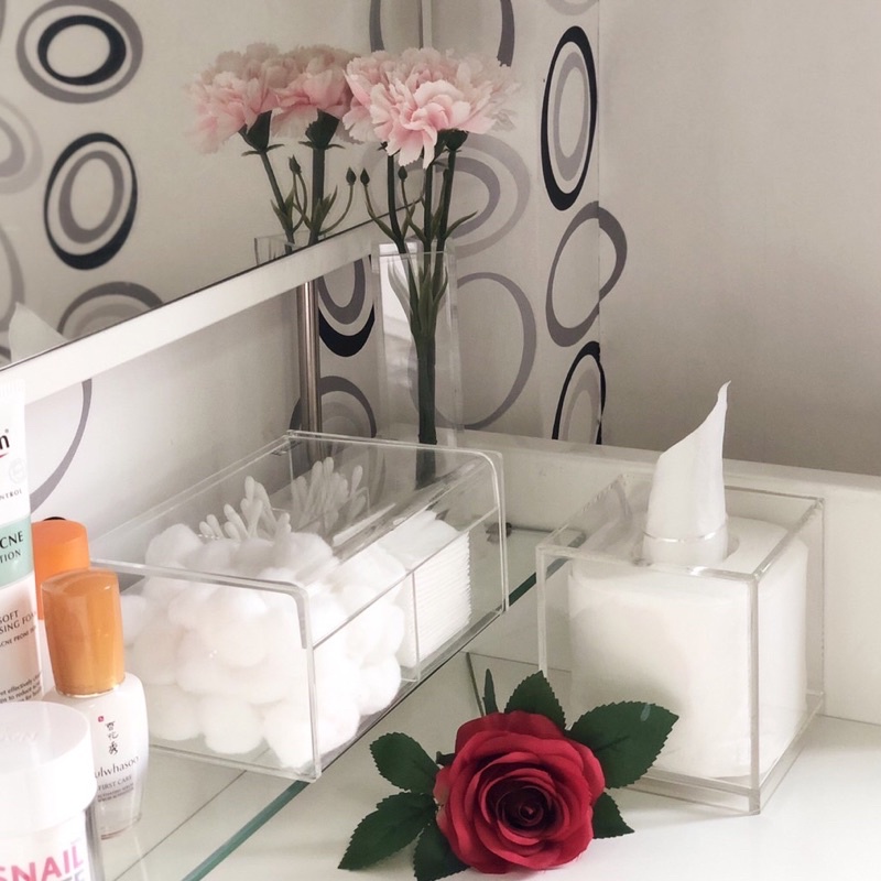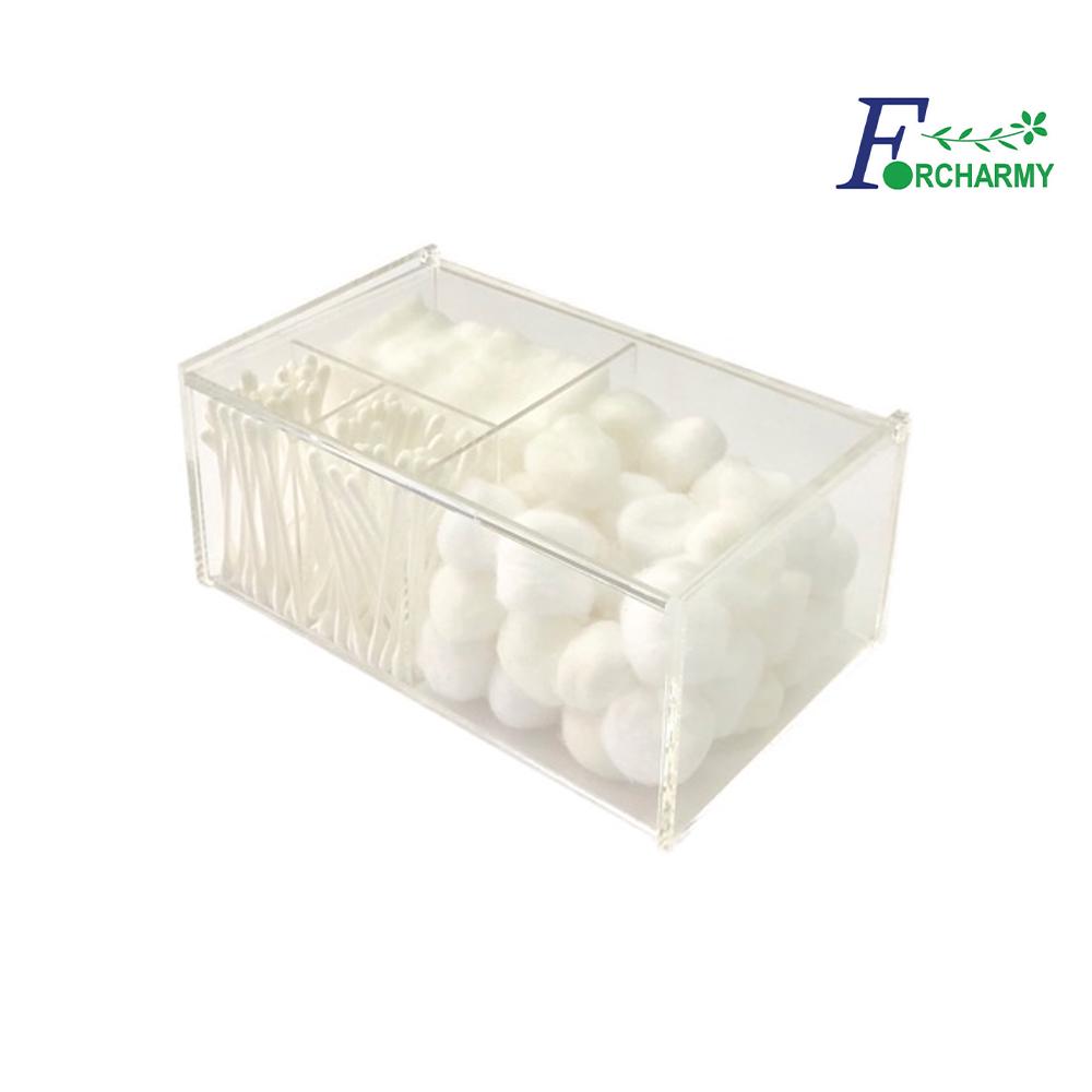 กล่องใส่สำลี คัตตอนบัด กล่องอะคริลิค แท้ 100% ขนาด 13x20.8x9 cm.