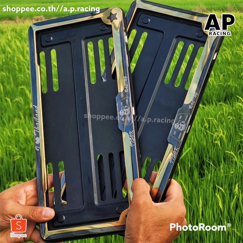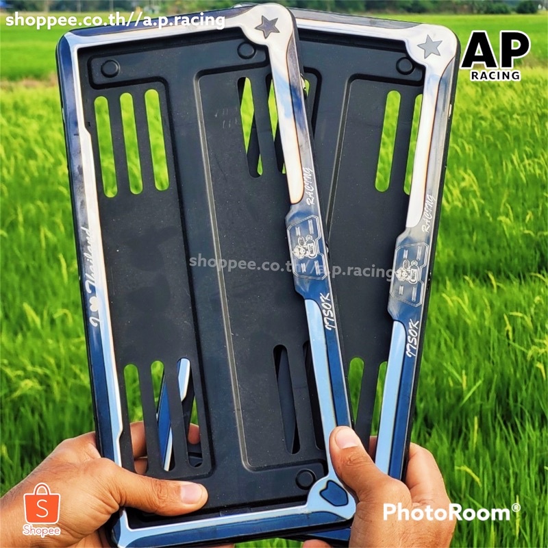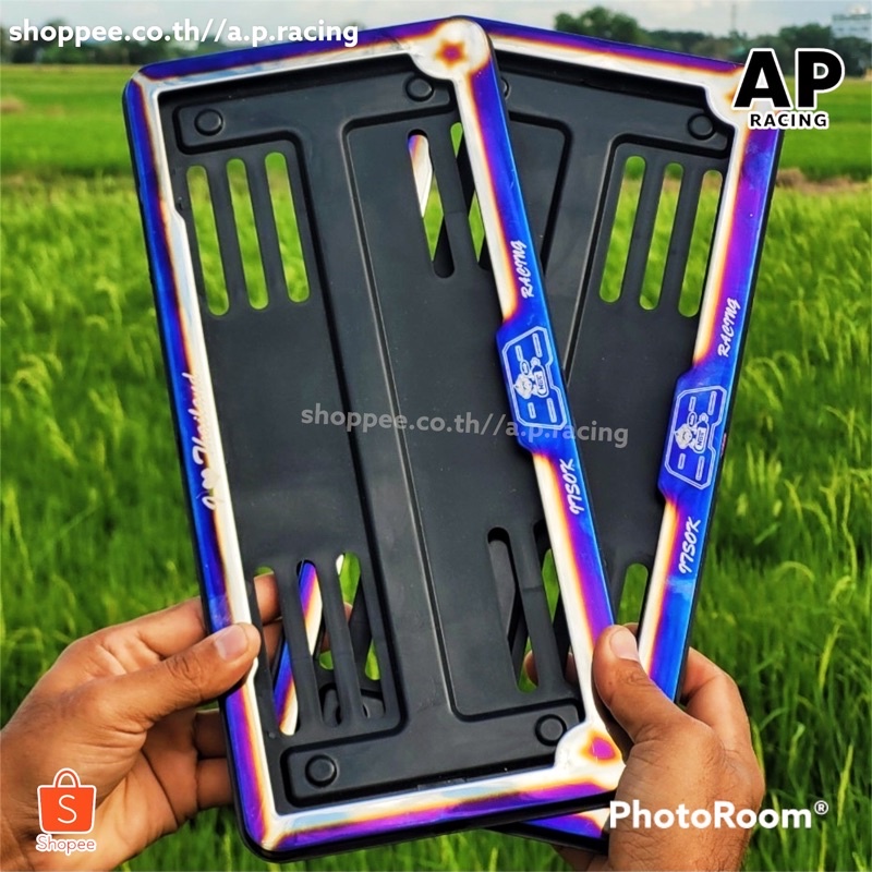A.P.racingกรอบป้ายทะเบียน ไทเท สแตนเลสแท้ ด้านในเป็นพลาสติก (1คู่ : 2 ชิ้น หน้า-หลัง) กรอบป้ายทะเบียนไทเท