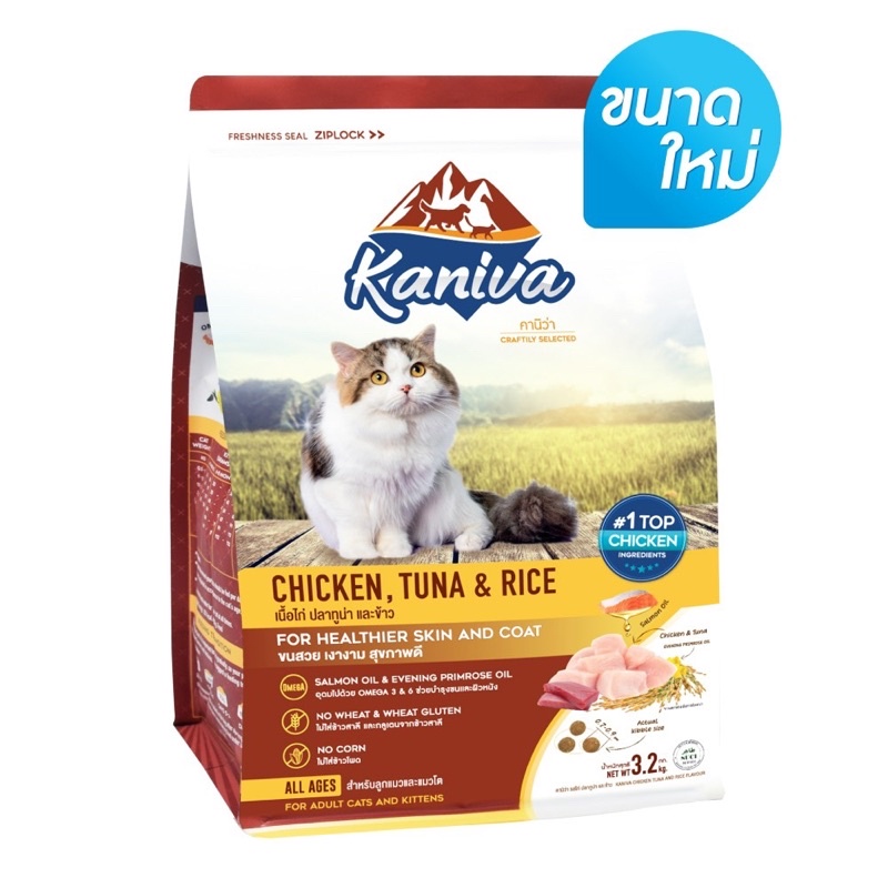 Kaniva cat food 3.2kgอาหารแมวคานิว่าสูตรไก่ ทูน่าและข้าว