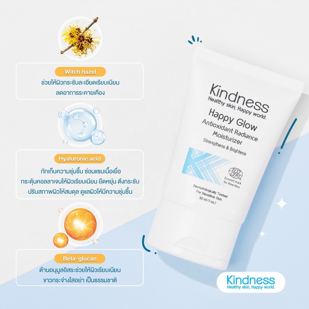 Happy Glow ครีมบำรุงผิวหน้า ฟื้นฟูผิวแพ้ง่ายให้แข็งแรง Antioxidant Radiance Moisturizer 30 ml