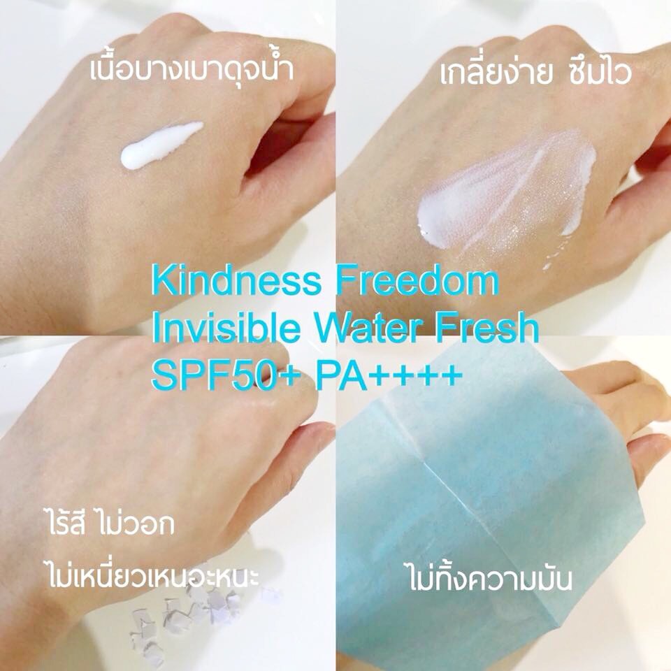 กันแดดสูตรอ่อนโยน Kindness Freedom เบา สบายดุจน้ำ Invincible Water Fresh SPF50+ PA++++ 30ml