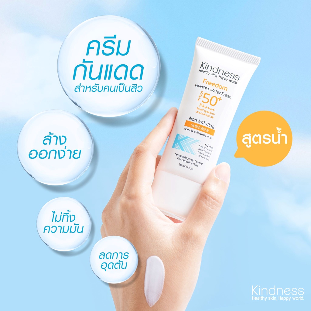เซ็ตครีมกันแดดสูตรอ่อนโยน Kindness Freedom เบาสบายดุจน้ำ Invincible Water Fresh SPF50 PA++++