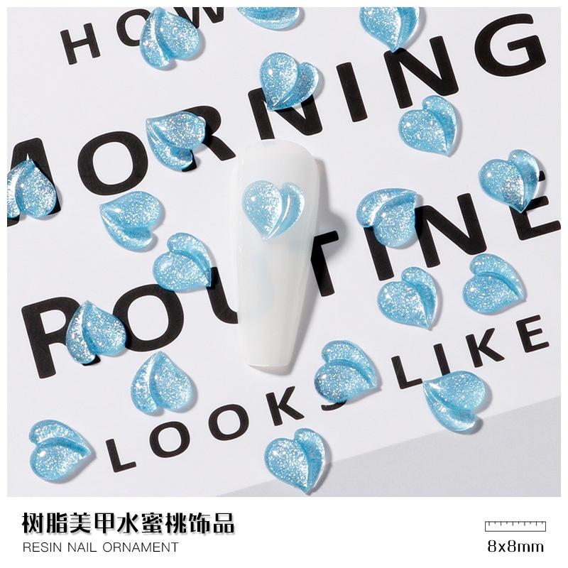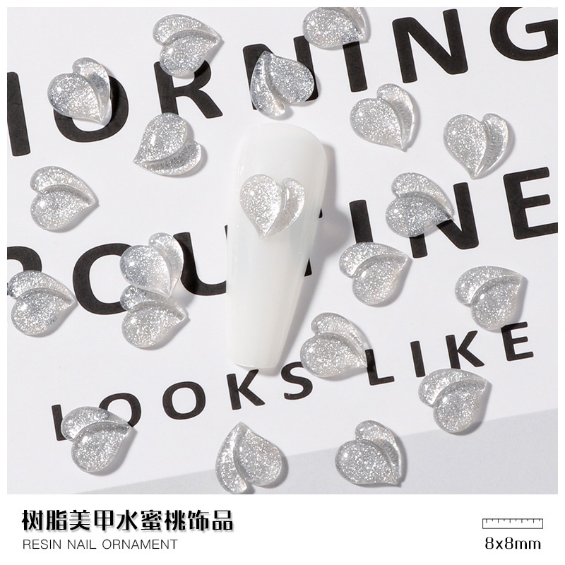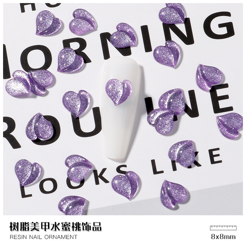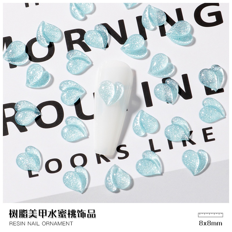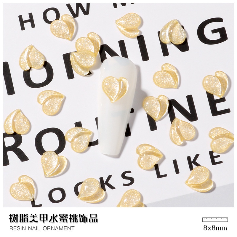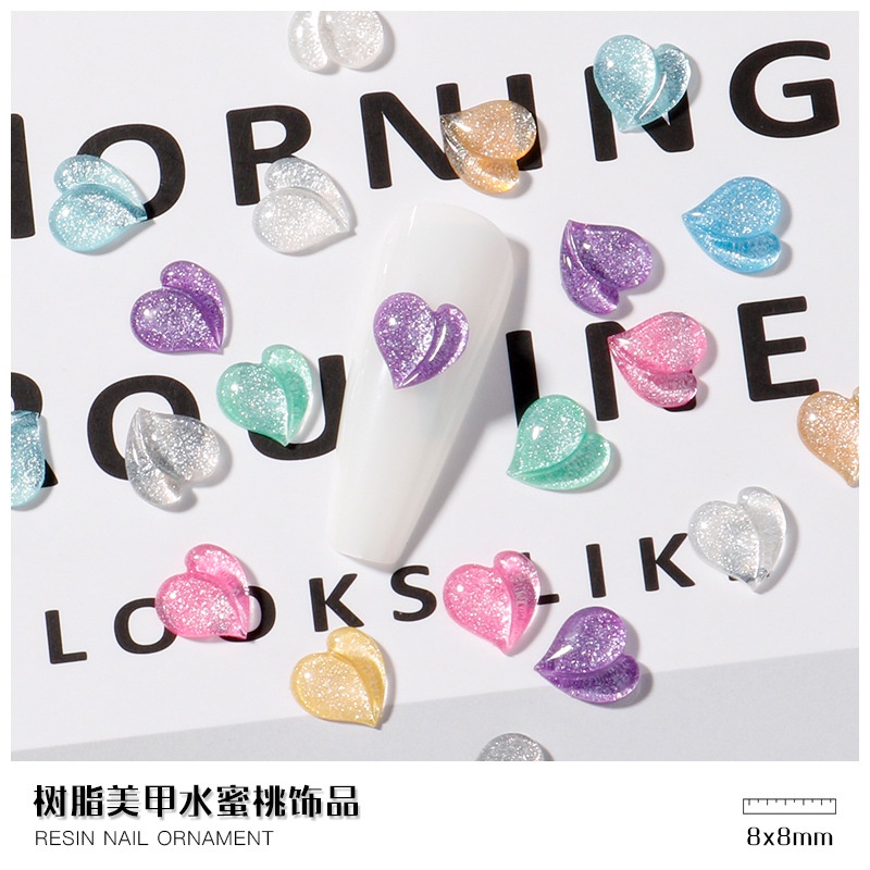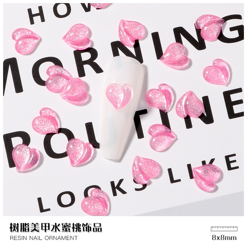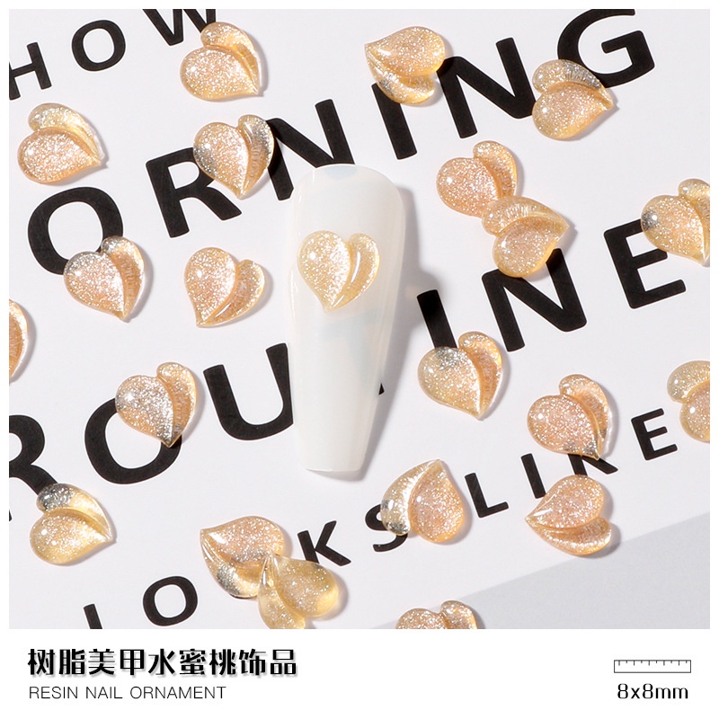 🔥พร้อมส่ง🔥เพชรเทียม รูปหัวใจ พีช ออโรร่า พื้นแบน สร้างสรรค์ สําหรับตกแต่งเล็บ DIY