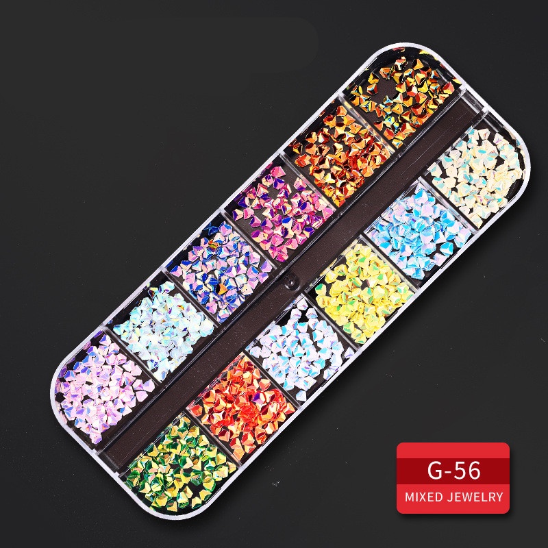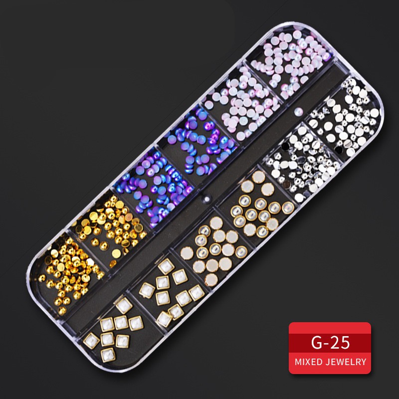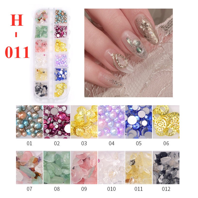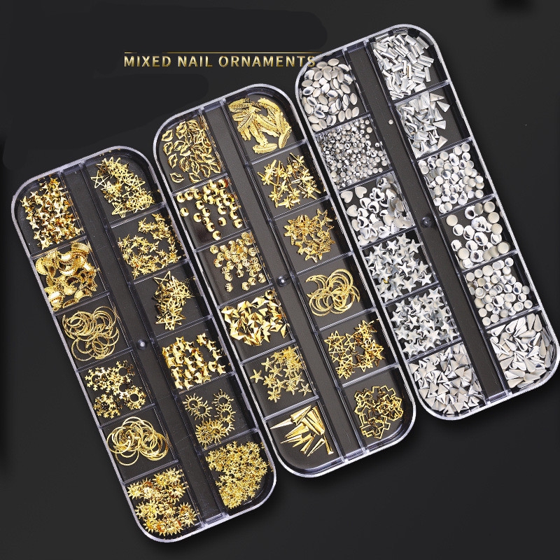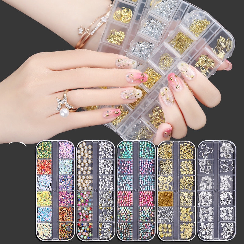 🔥พร้อมส่ง🔥เพชร พลอยเทียม สำหรับติดตกแต่งเล็บ (กล่องยาว) อะไหล่เพชร 3 มิติ สำหรับติดเล็บ DIY จำนวน 12