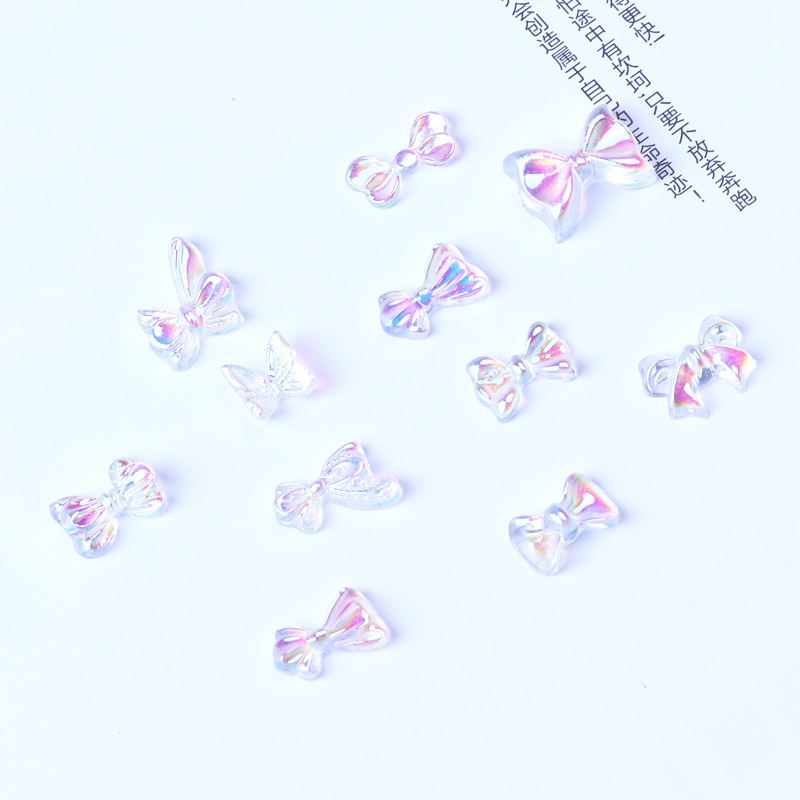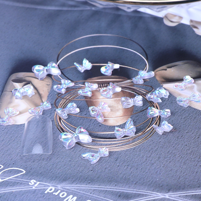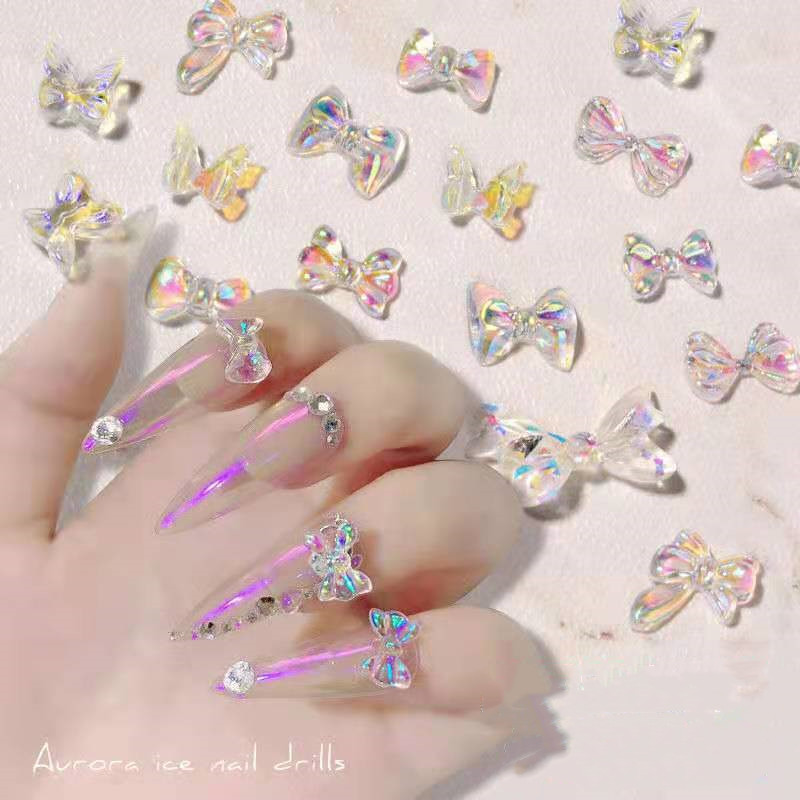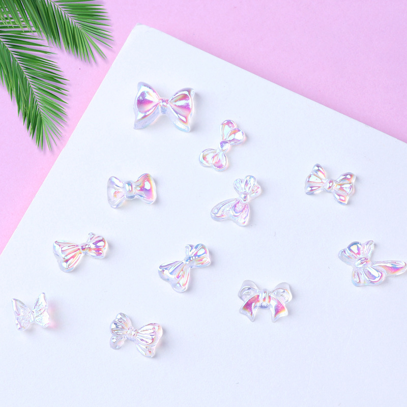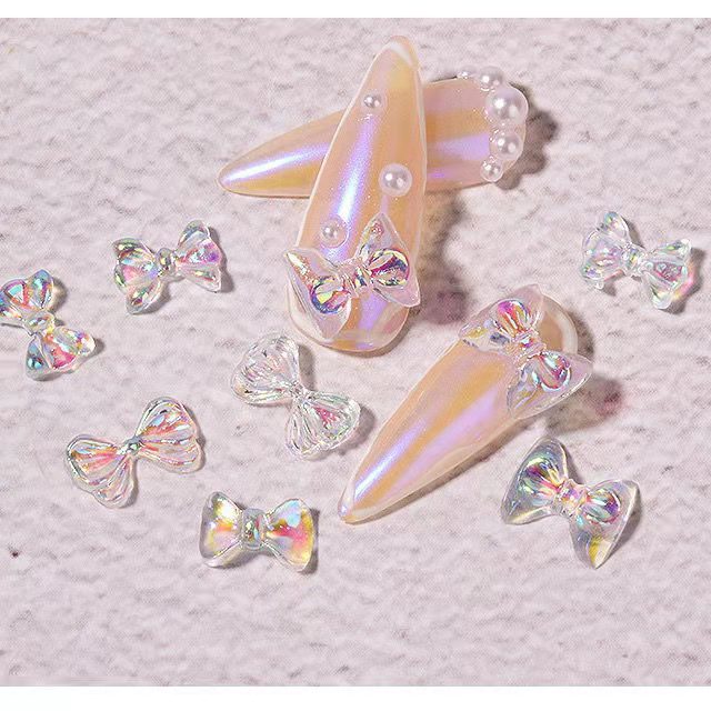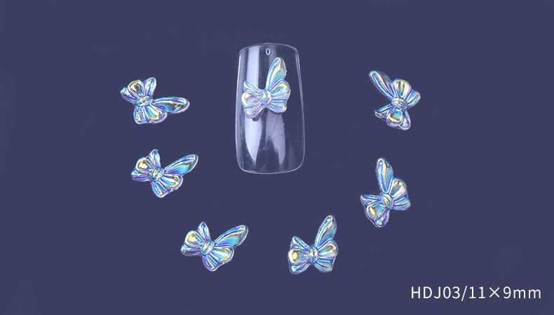 อุปกรณ์อะคลีลิค รูปโบว์ ผีเสื้อ โฮโลแกรม 3D สําหรับตกแต่งเล็บ 3 ชิ้น