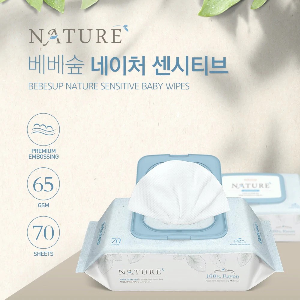Bebesup ทิชชู่เปียกเช็ดทำความสะอาดผิวเด็ก ย่อยสลาย (เนเจอร์ เซนซิทีฟ 70 แผ่น x 3 แพ็ค)_Baby wipes for baby Biodegradable