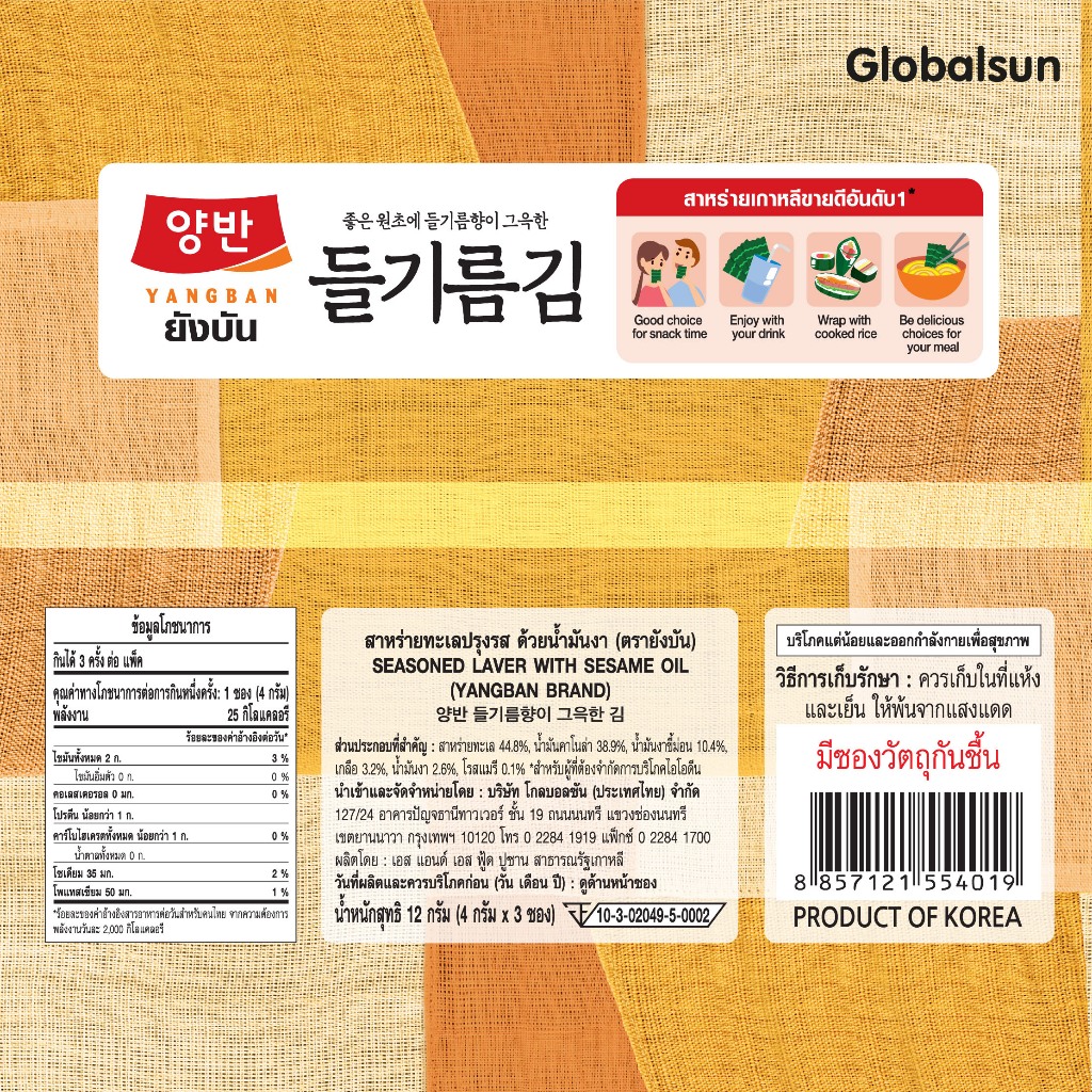[โปรยกลัง] YANGBAN สาหร่ายทะเลปรุงรสด้วยน้ำมันงา (ตรายังบัน)