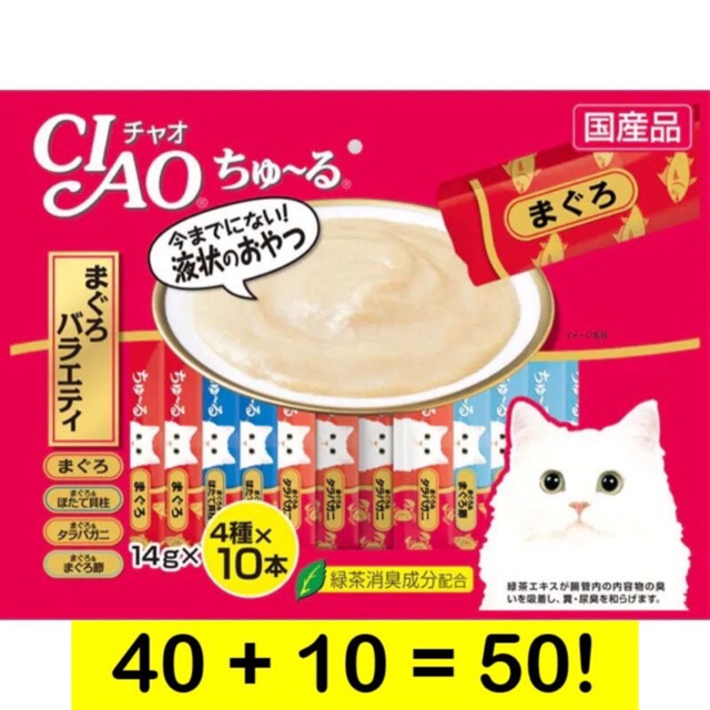 CIAO Churu 40 + 10 ซอง เชา ชูหรุ ขนมแมวเลีย สุดคุ้ม!