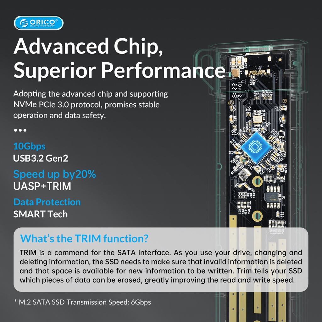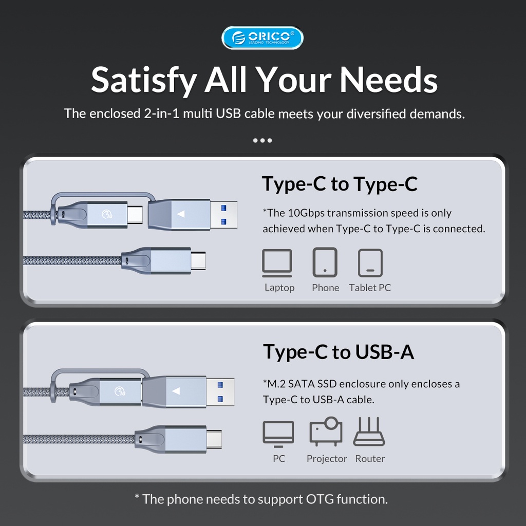 Orico M2 SSD กรณี NVMe USB Type C Gen2 10Gbps PCIe SSD Enclosure M.2 NVMe Enclosure M.2 SATA NGFF 6Gbps Solid State Drive Case (MM2C3)