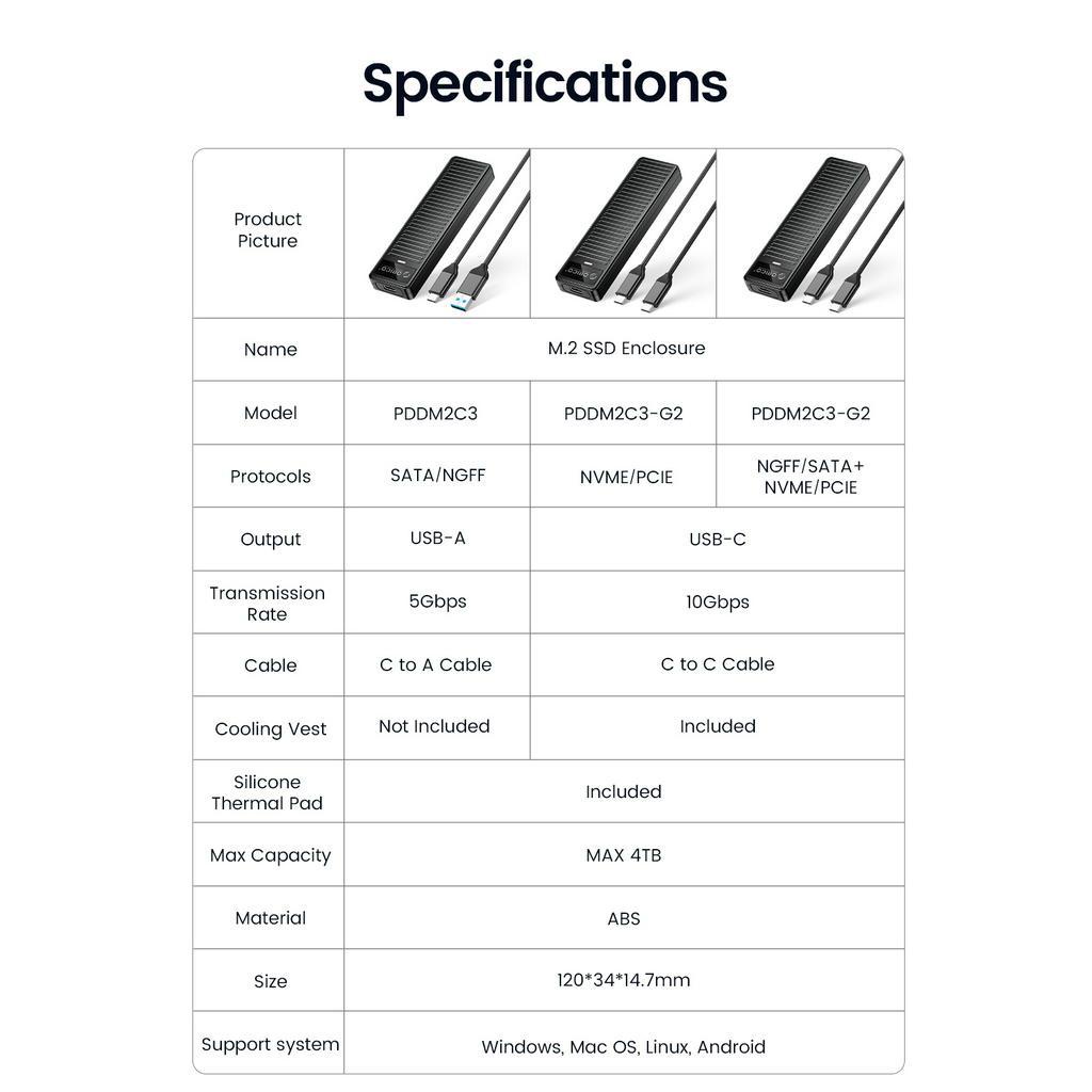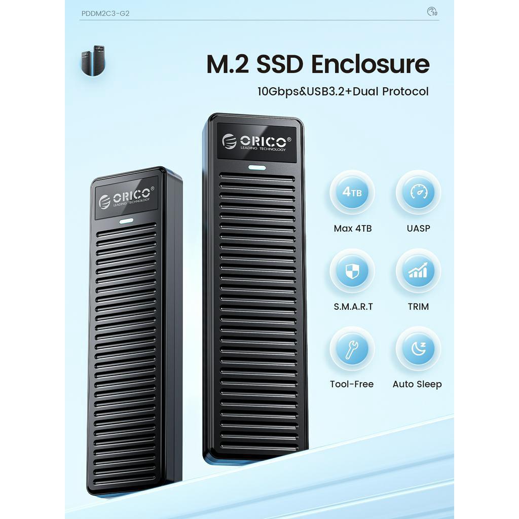 Orico M.2 NVMe SSD Enclosure 10Gbps USB 3.2 Gen2 NVMe SATA เครื่องมือฟรีรองรับ UASP (PDDM2C3)