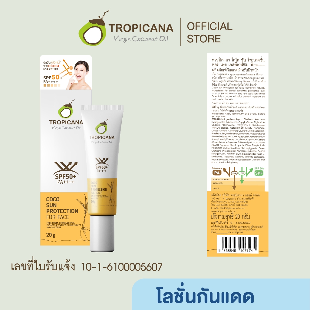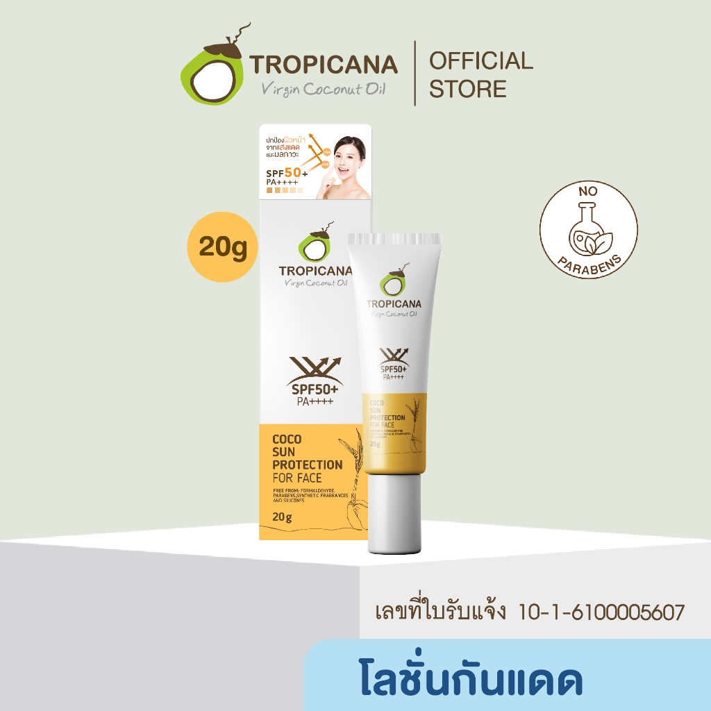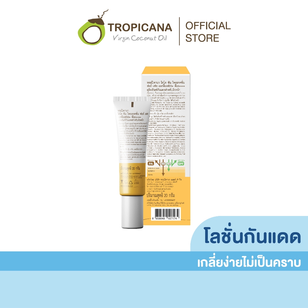 Tropicana | ทรอปิคานา ผลิตภัณฑ์กันแดดสำหรับผิวหน้า ใช้ได้ทุกสภาพผิว SPF50+ PA++++ 20 G