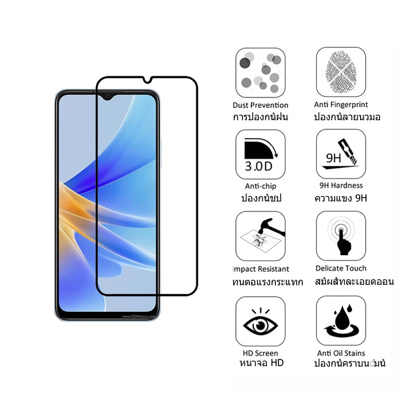 ฟิล์มกระจกนิรภัย OPPO A17 A54 กระจกนิรภัยเต็มแผ่นกันรอยหน้าจอพร้อมตัวป้องกันกล้อง OPPO A96 A95 A93 A77s A77 A76 A57 A54 A17 A16K A74 Reno 8z Pro 5G ฟิล์มหลัง / เลนส์กล้อง