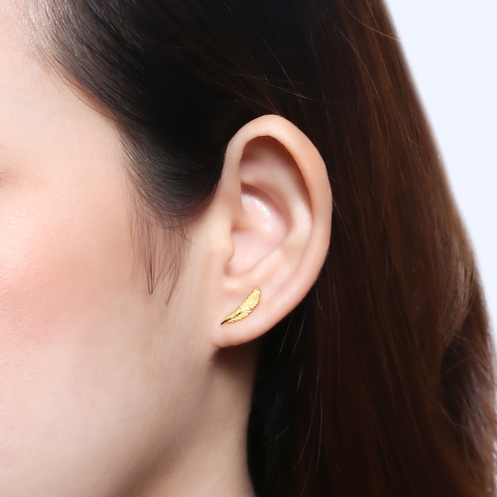 PRIMA ต่างหูทองคำ 99.9% รูปขนนก 111E4011-18