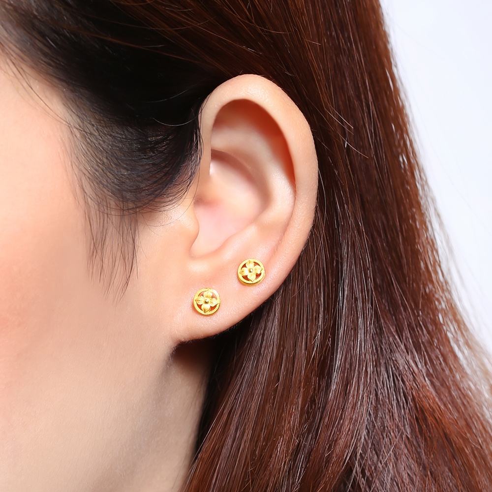 PRIMA ต่างหูทองคำ 99.9% Ixora Collection 111E4128-18 (จำหน่ายเป็นคู่)