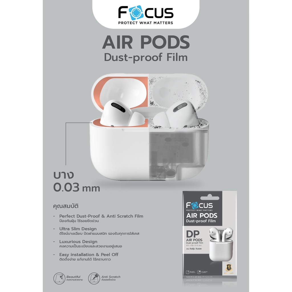 โฟกัส ฟิล์มกันฝุ่น สำหรับ AirPods 3, AirPods 1/2, AirPods Pro กันฝุ่น กันรอย - Focus Dust-proof Film