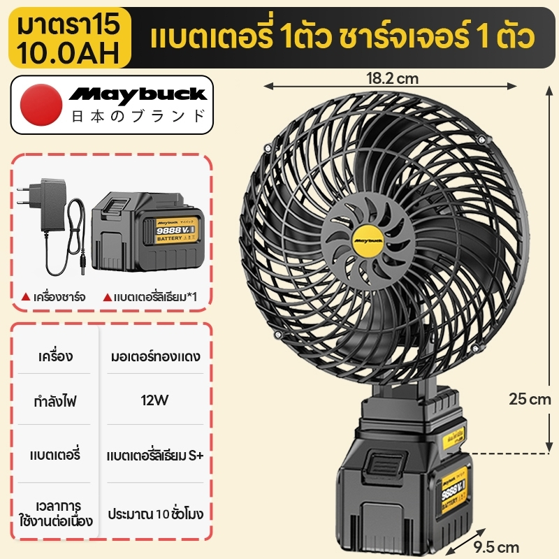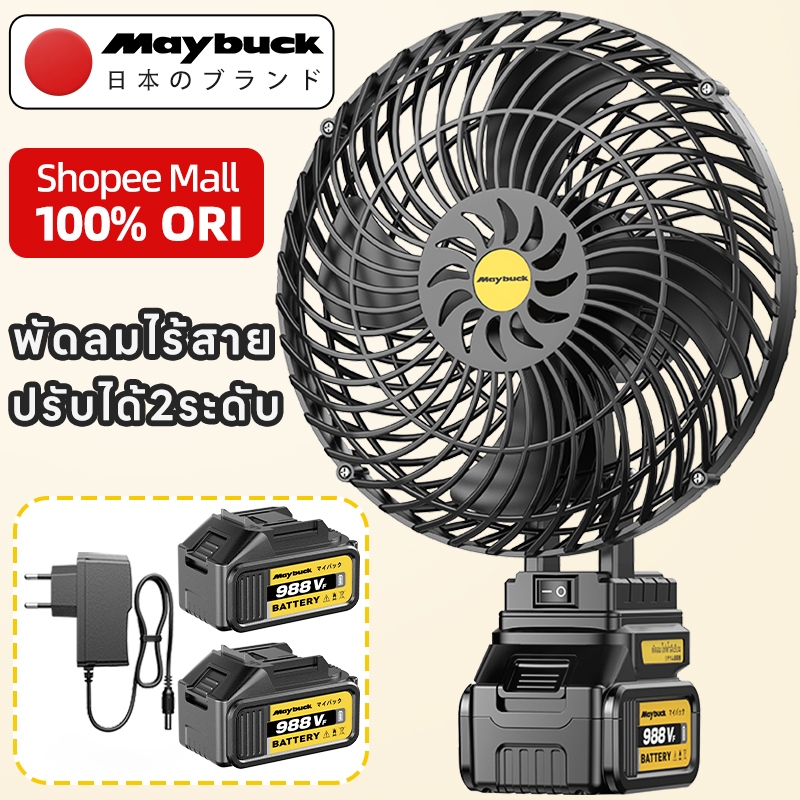 Maybuck Japan พัดลมแบตเตอรี่ไร้สาย 8นิ้ว พัดลมแบตสว่าน พัดลมพลังสูงแบบพกพา พัดลมปรับได้สองสปีด