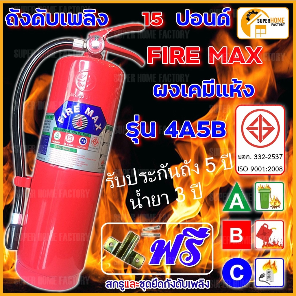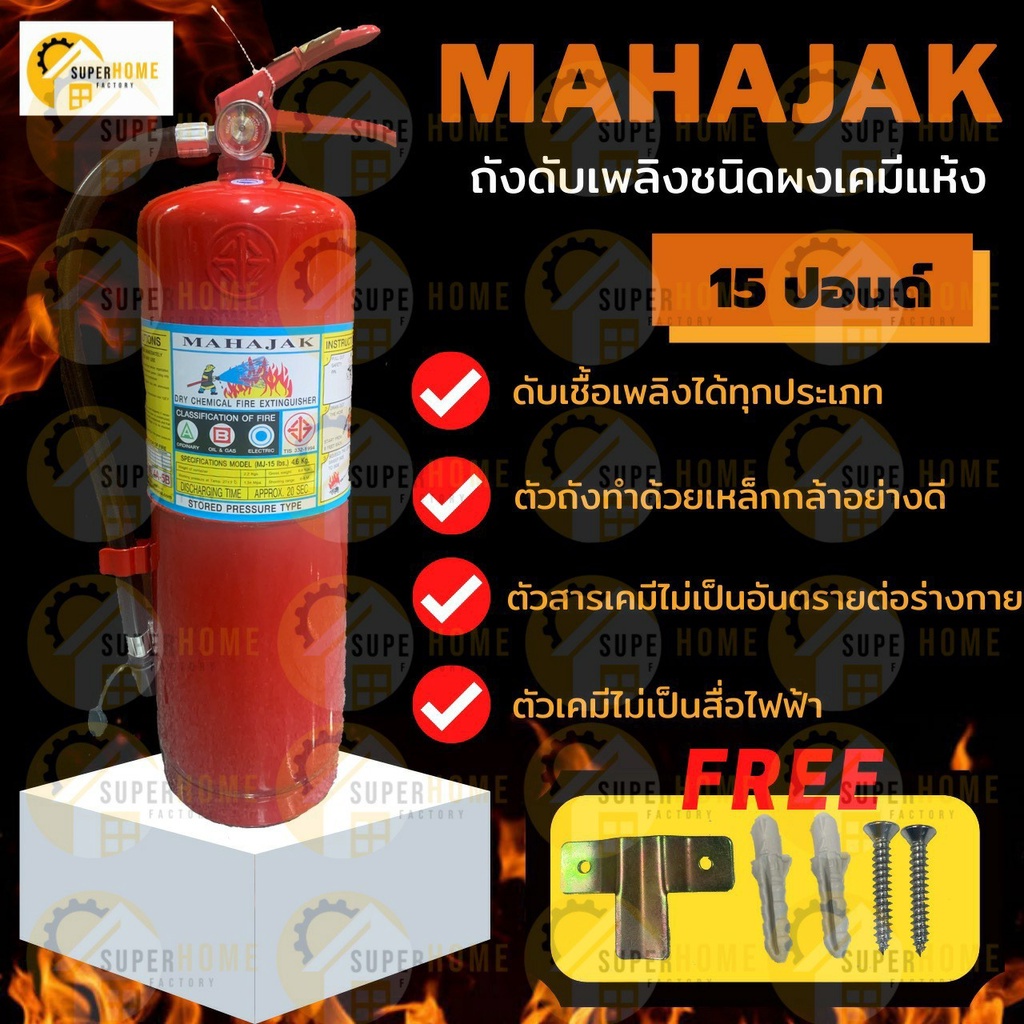 💥ค่าส่งต่อ1ถัง💥FIREMAN ถังดับเพลิง Mahajak ถังดับเพลิงผงเคมีแห้ง 15ปอนด์ 10ปอนด์ 4A5B firemax