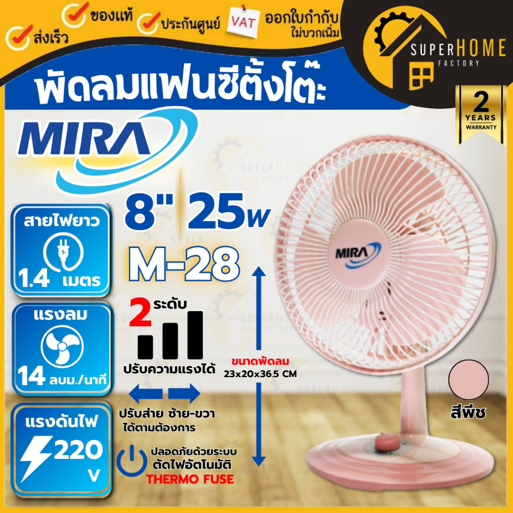 💥แท้ ส่งด่วน💥MIRA พัดลมตั้งโต๊ะ 8 นิ้ว รุ่น M-28 มีระบบตัดไฟ อัตโนมัติ รับประกัน 2 ปี พัดลม ตั้งโต๊ะ M28