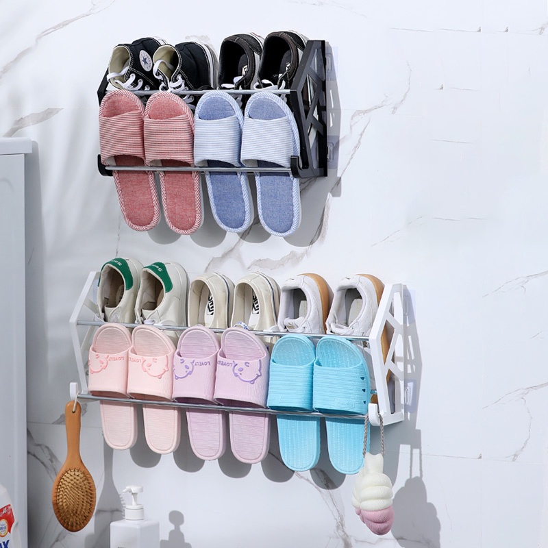 ชั้นวางรองเท้าติดผนังแบบแขวน รองเท้าแตะห้องน้ำ ไม่ต้องเจาะ