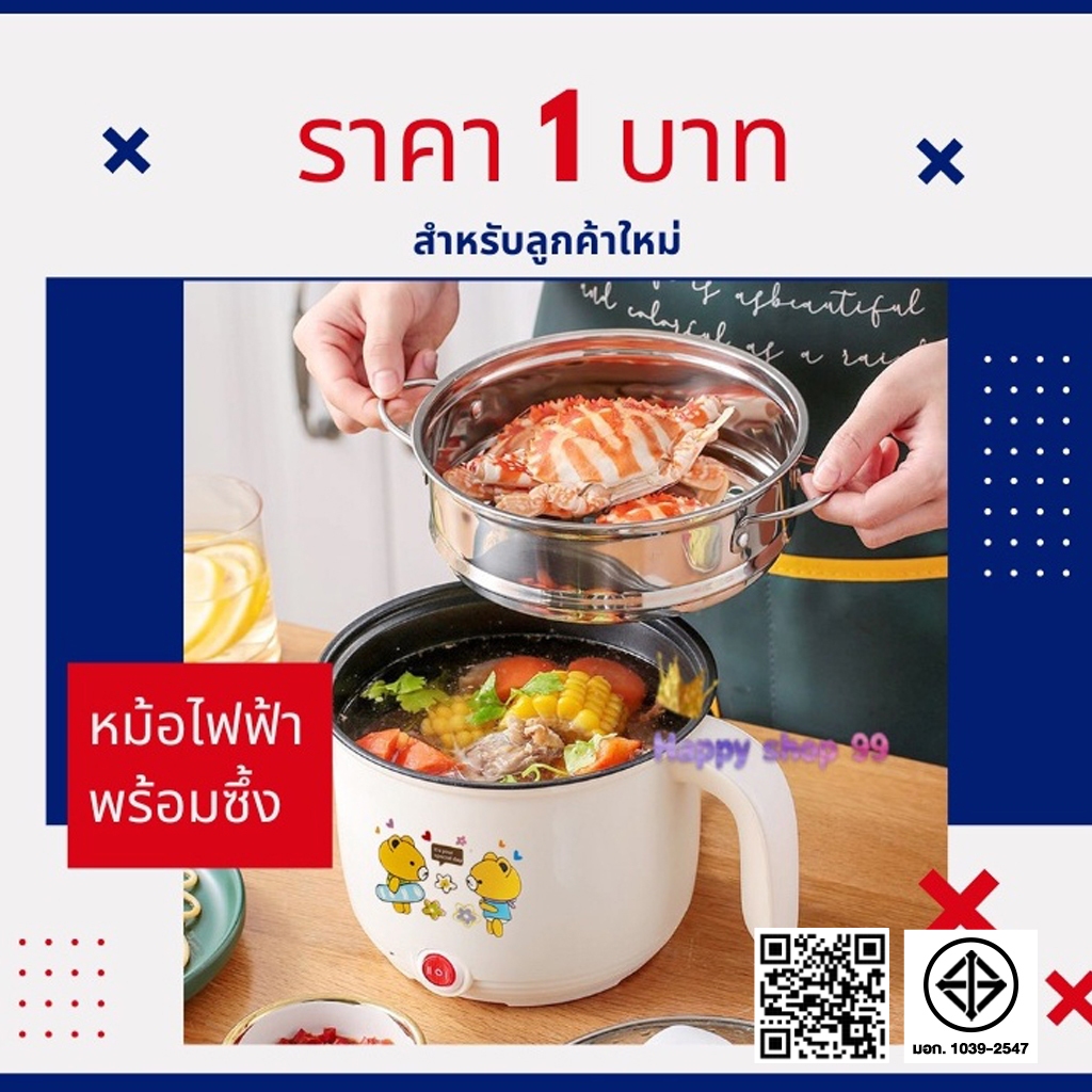 (ลูกค้าใหม่ 1 บาท) หม้อไฟฟ้า หม้อเคลือบเทปล่อน หม้อสแตนเลส
