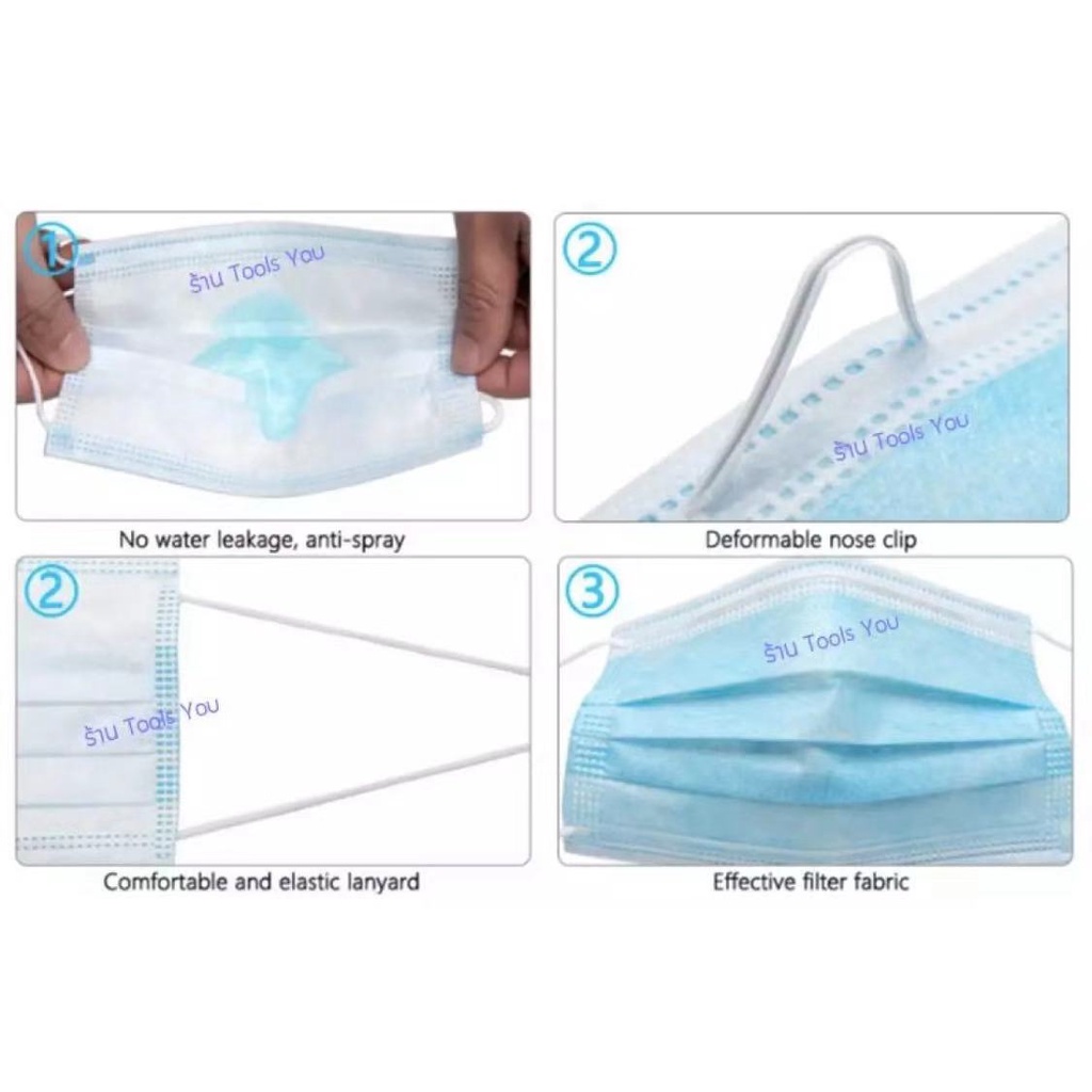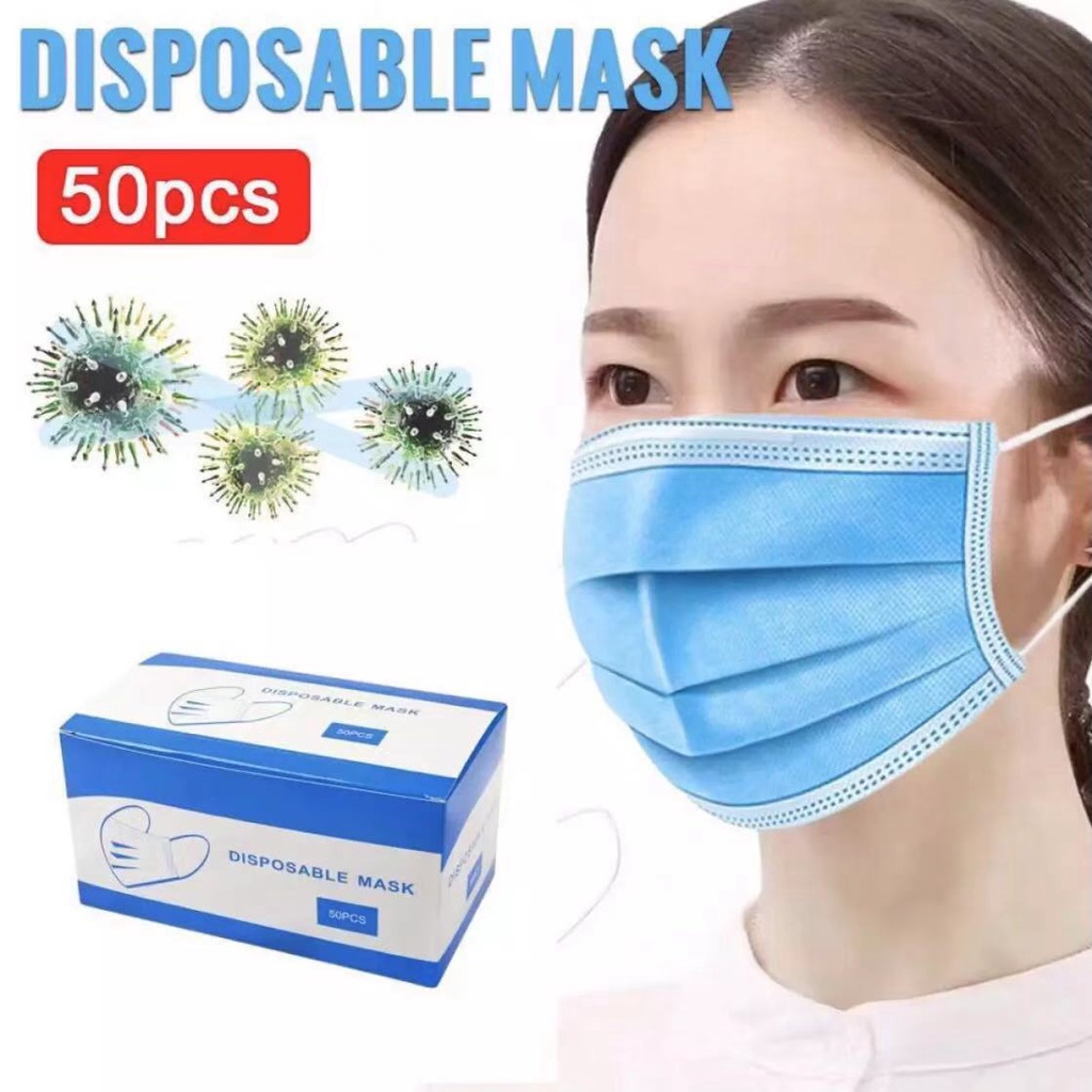 Face Mask หน้ากากอนามัย ผ้าปิดจมูกอนามัย (หนา 3 ชั้น) แบบมีกล่อง 1 กล่อง / 50ชิ้น (พร้อมส่งในไทย)ลดล้างสต็อก