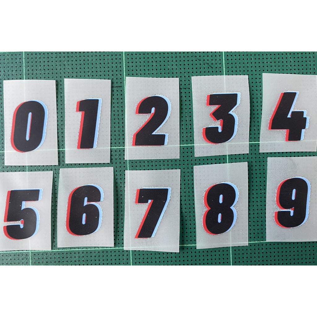 ตัวรีดติดเสื้อ อักษร 0 - 9 👍 สีดำเงาแดงฟ้า ขนาดสูง 2.5 CM 👍 รีดง่ายติดทุกเนื้อผ้า
