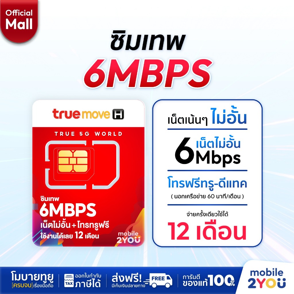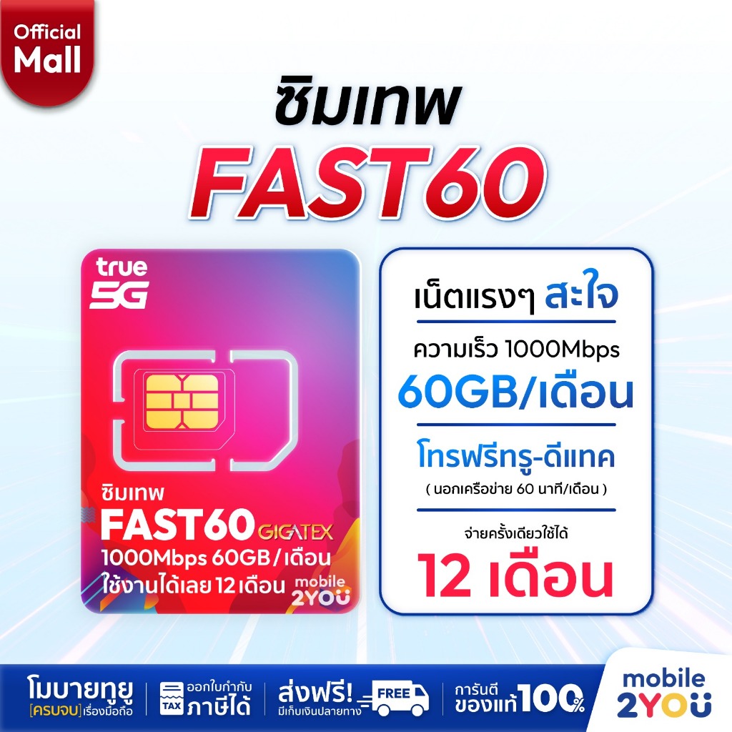 ✅[ ส่งฟรี ] ซิมเทพ ซิมเน็ตรายปี TRUE DTAC ซิมรายปีทรู ดีแทค ซิมรายปี โทรฟรี เน็ตแรง 5G 4G ราคาถูก ซิม mobile2youmall