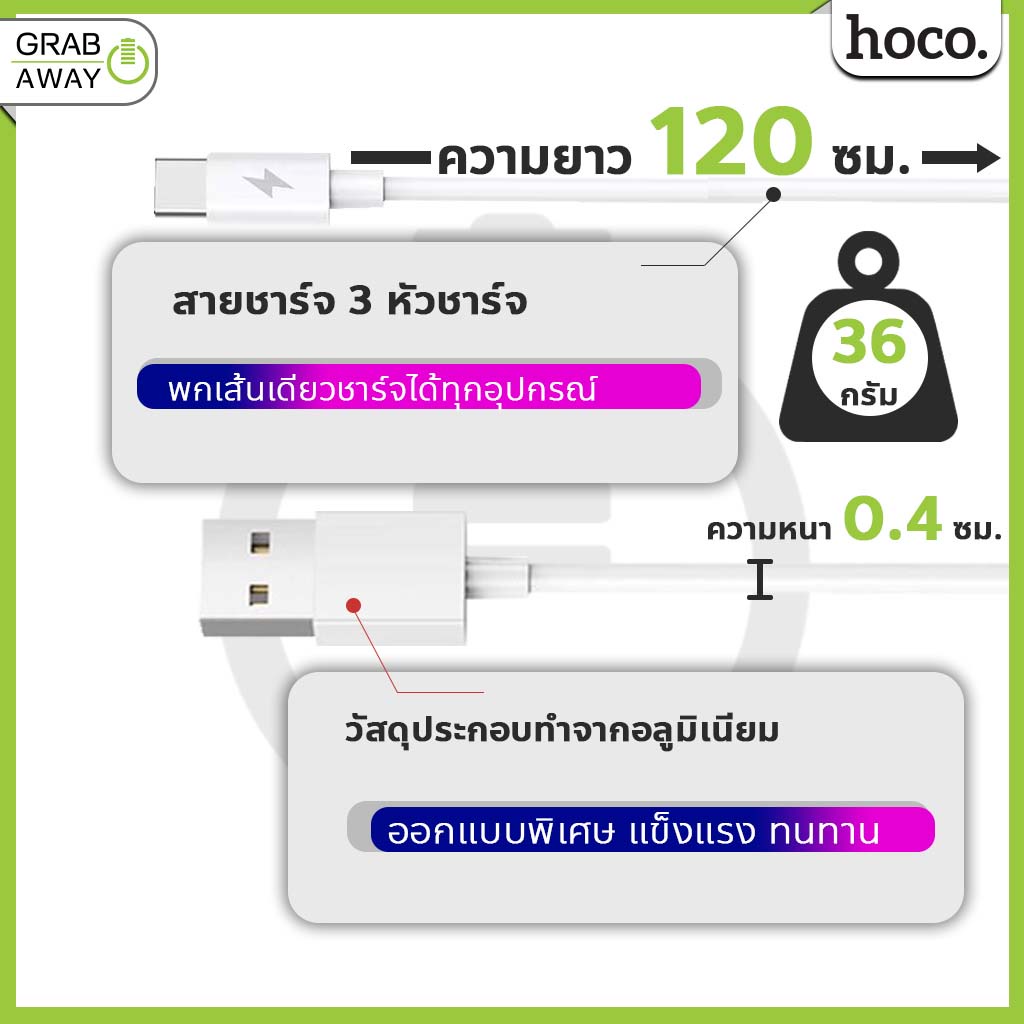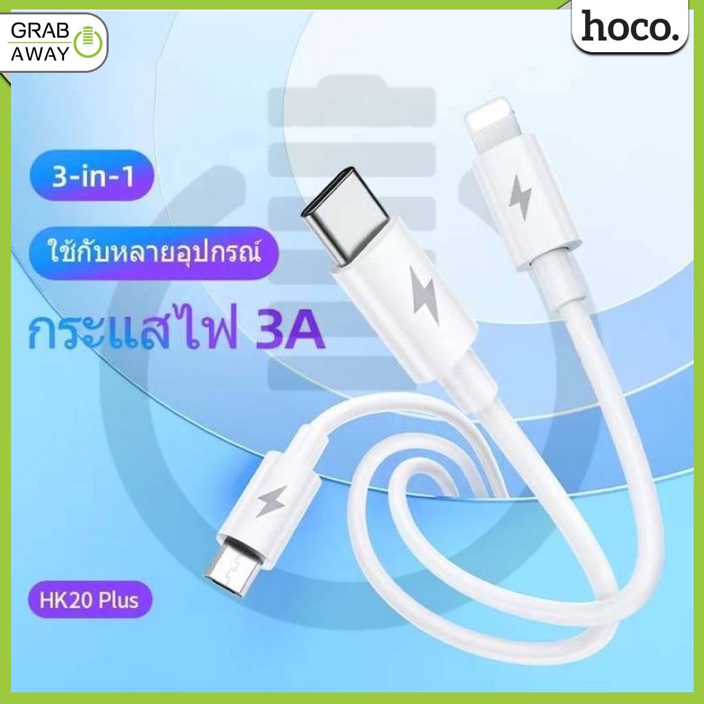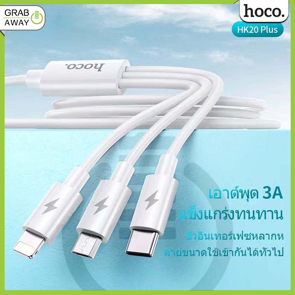 Hoco HK20 Plus สายชาร์จ 3 หัว จ่ายไฟสูงสุด 3A ใช้ได้กับมือถือทุกรุ่น พกเส้นเดียวชาร์จได้ทุกอุปกรณ์ ของแท้ hc7