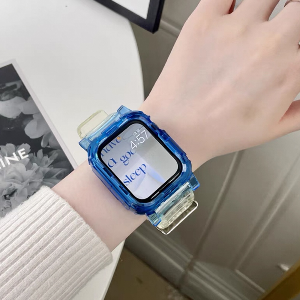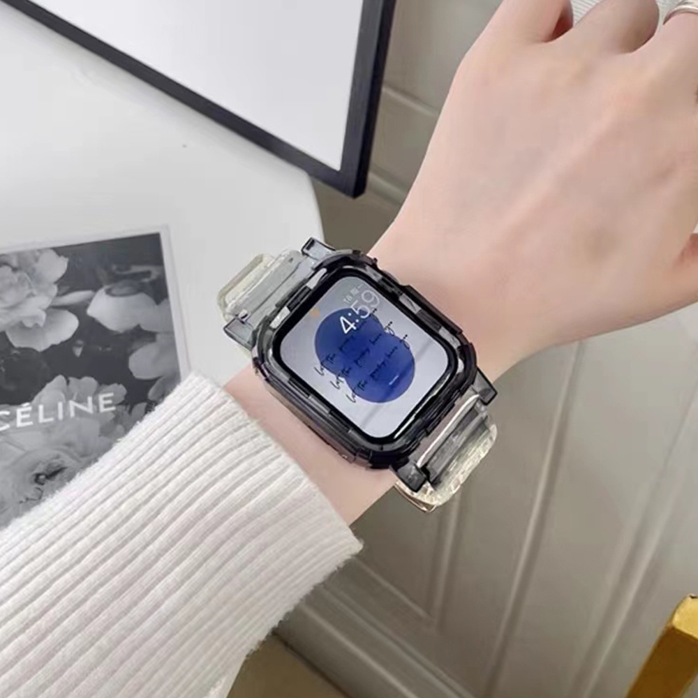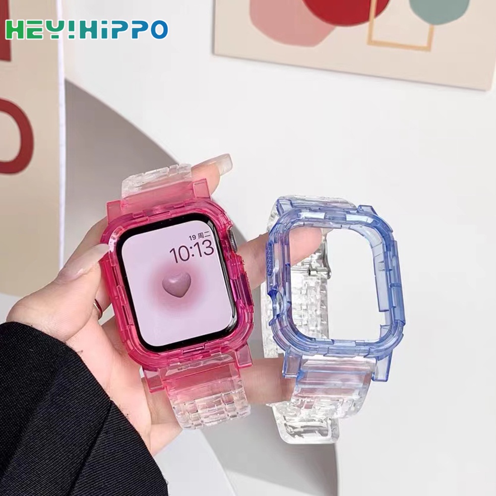 สายนาฬิกาข้อมือ แบบใส สองสี สําหรับสมาร์ทวอทช์ series 7 6 SE 5 4 3 ขนาด 45 44 42 41 40 38 มม.