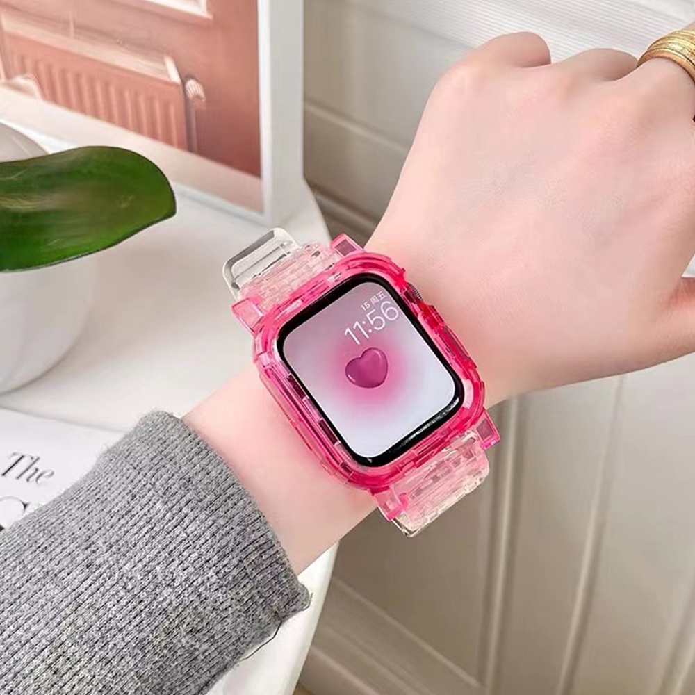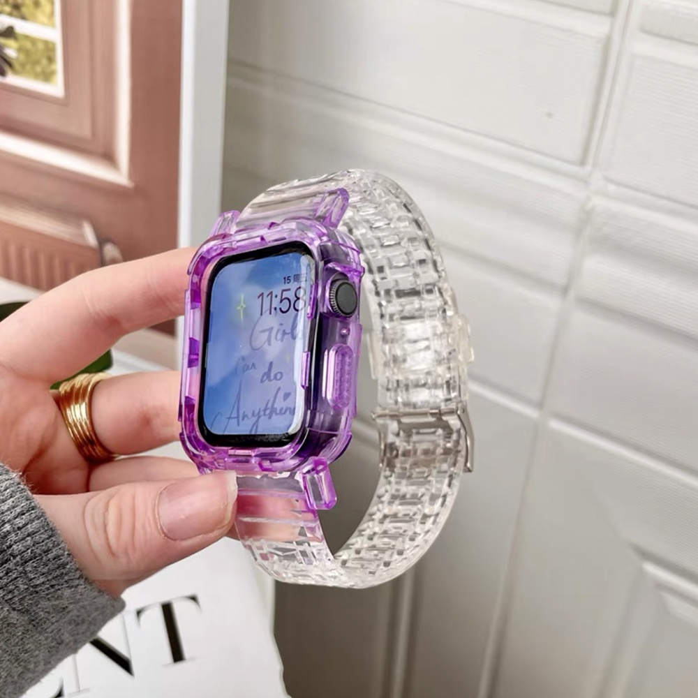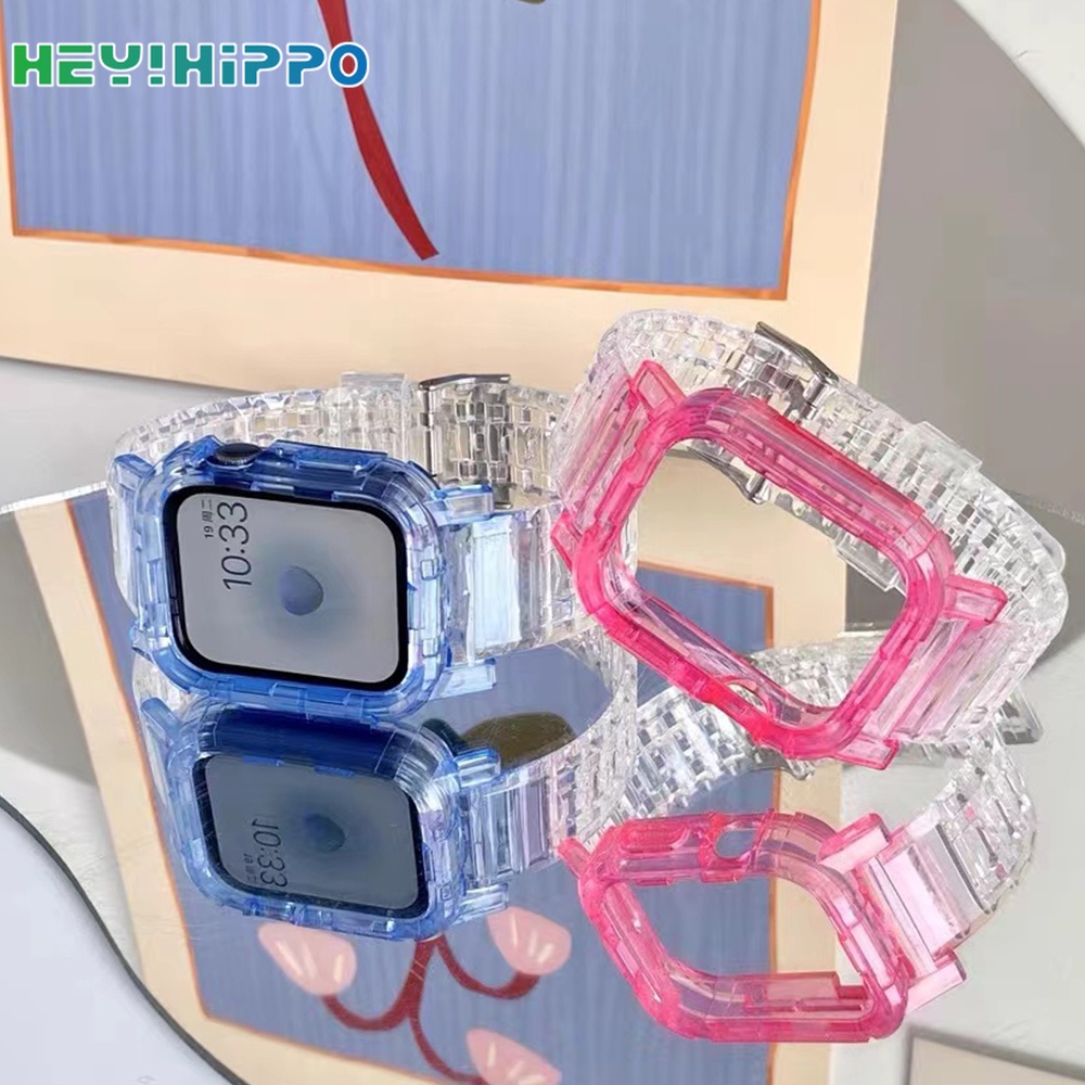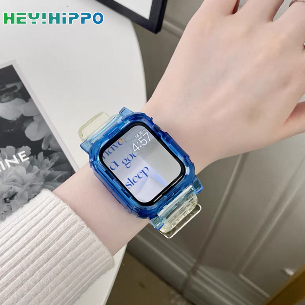 สายนาฬิกาข้อมือ แบบใส สองสี สําหรับสมาร์ทวอทช์ series 7 6 SE 5 4 3 ขนาด 45 44 42 41 40 38 มม.