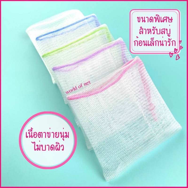 ถุงตีฟอง ขนาดพิเศษสำหรับสบู่ก้อนเล็ก แพคละ10ชิ้น ถุงตาข่ายตีฟอง 2 ชั้น เนื้อนุ่ม