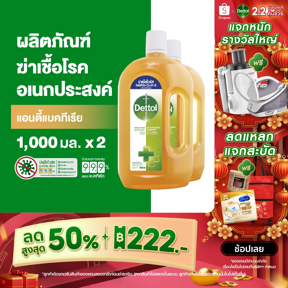 Dettol เดทตอล น้ำยาฆ่าเชื้อเดทตอล น้ำยาฆ่าเชื้อโรคไฮยีนมัลติ-ยูสน้ำยาถูพื้น 1000มล.X2 (แพ็กเกจอยู่ระหว่างการเปลี่ยนแปลง)