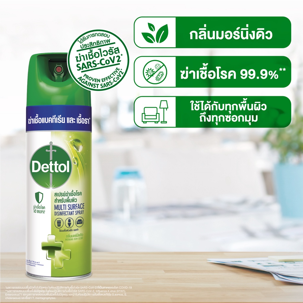 Dettol เดทตอล สเปรย์ฆ่าเชื้อเดทตอล สเปรย์ทำความสะอาด ดิสอินเฟคแทนท์ สูตรมอร์นิ่งดิว 450มล.X4