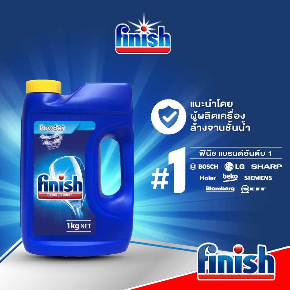 Finish ฟินิช ชุดผลิตภัณฑ์ล้างจาน ชนิดผง 1 กก. + ชนิดก้อน21ก้อน ฟรี รินซ์เอด 500 มล.