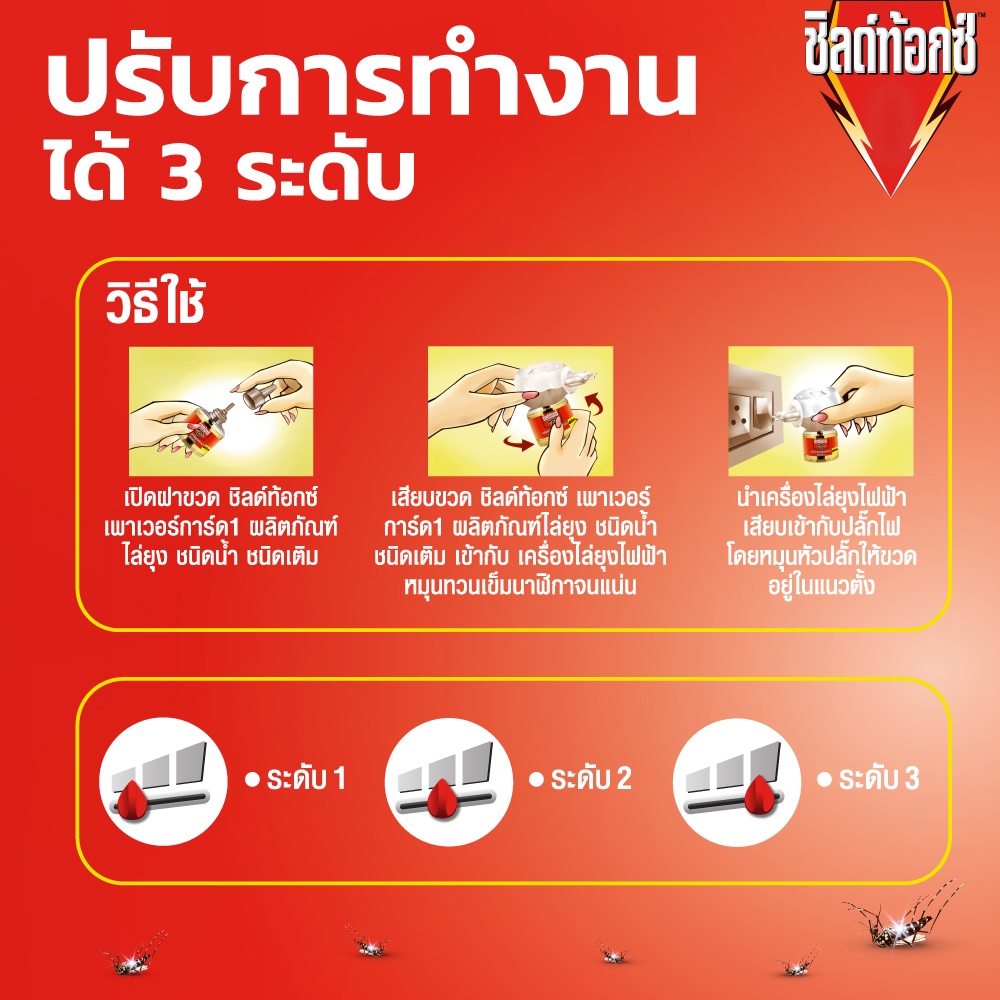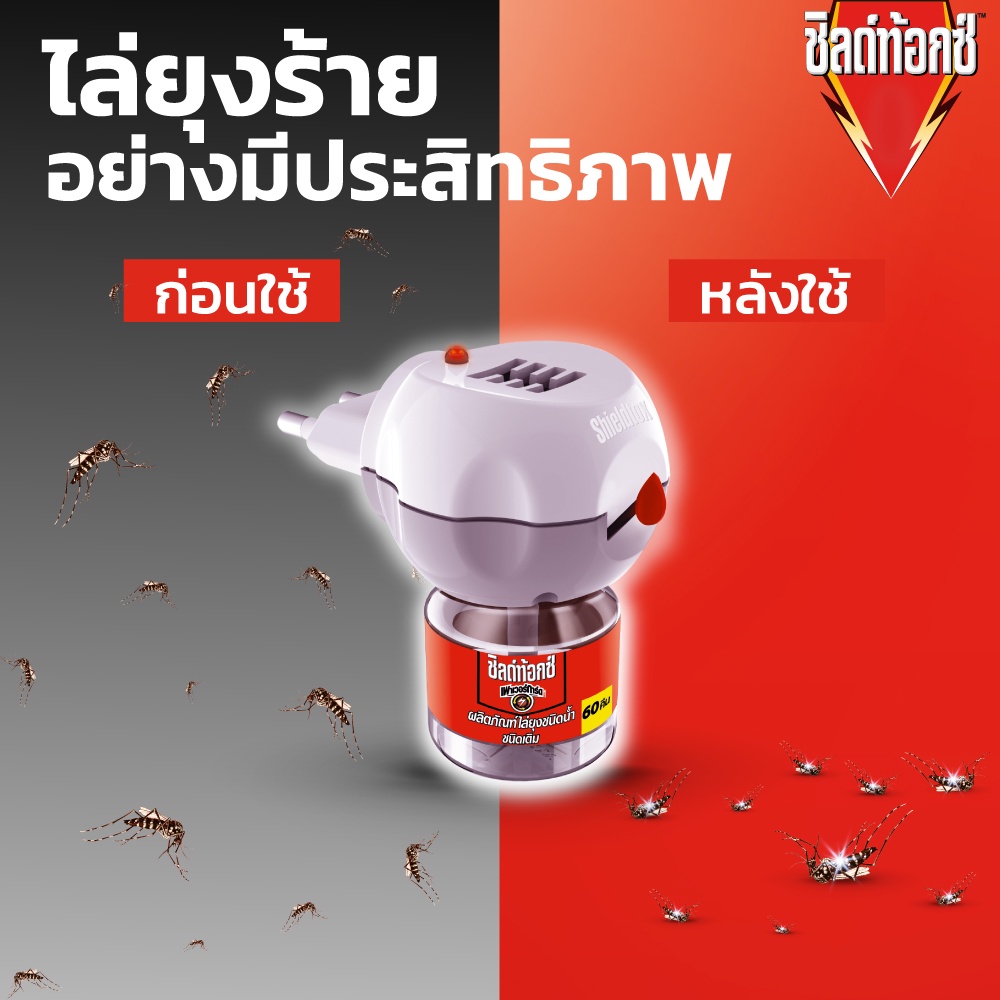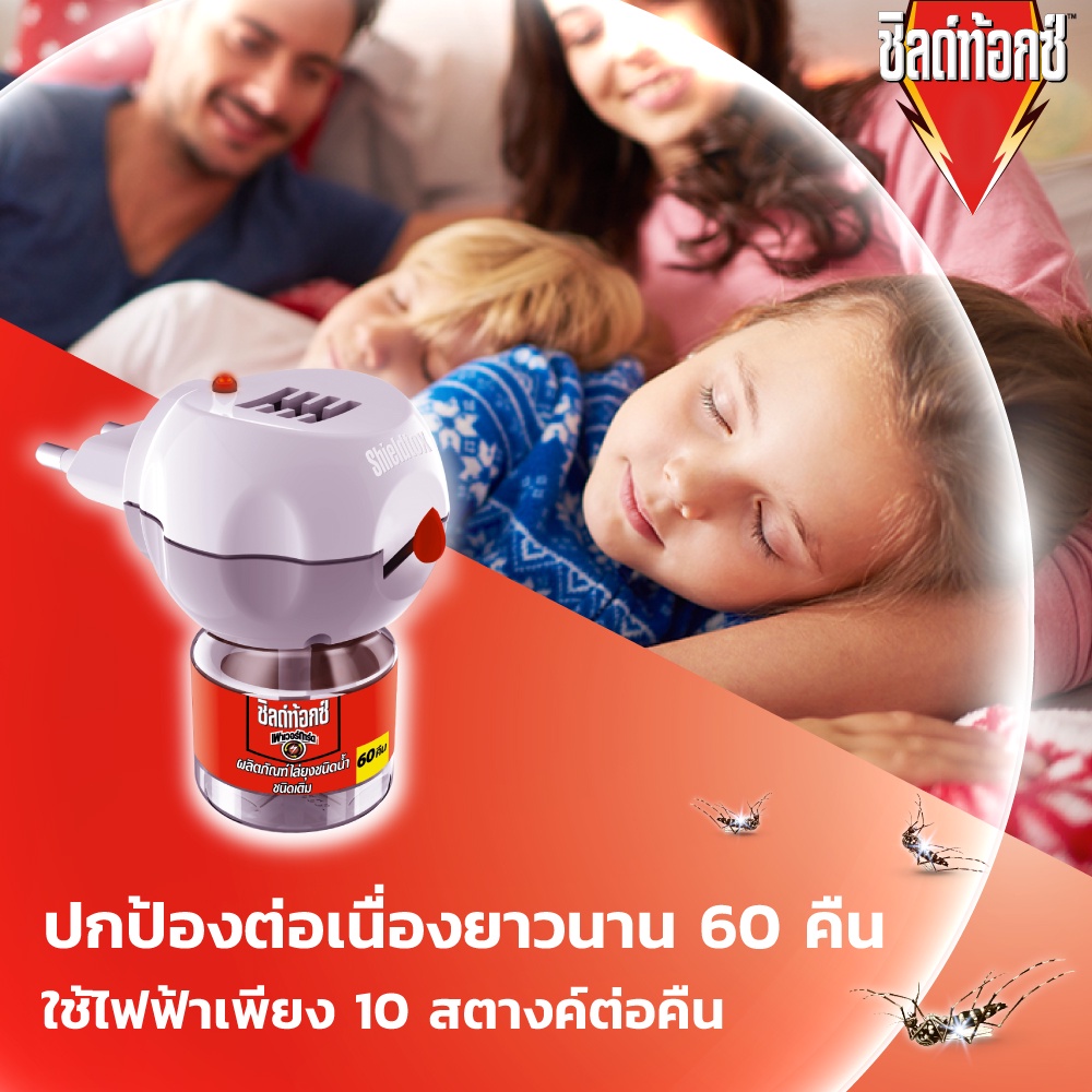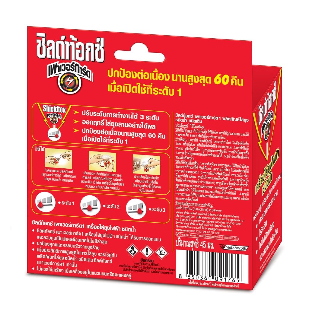 Shieldtox LED ชิลด์ท้อกซ์ เพาเวอร์การ์ด ผลิตภัณฑ์ไล่ยุงไฟฟ้า กำจัดยุง ชนิดน้ำ ใช้ได้ 60 คืน 45ml