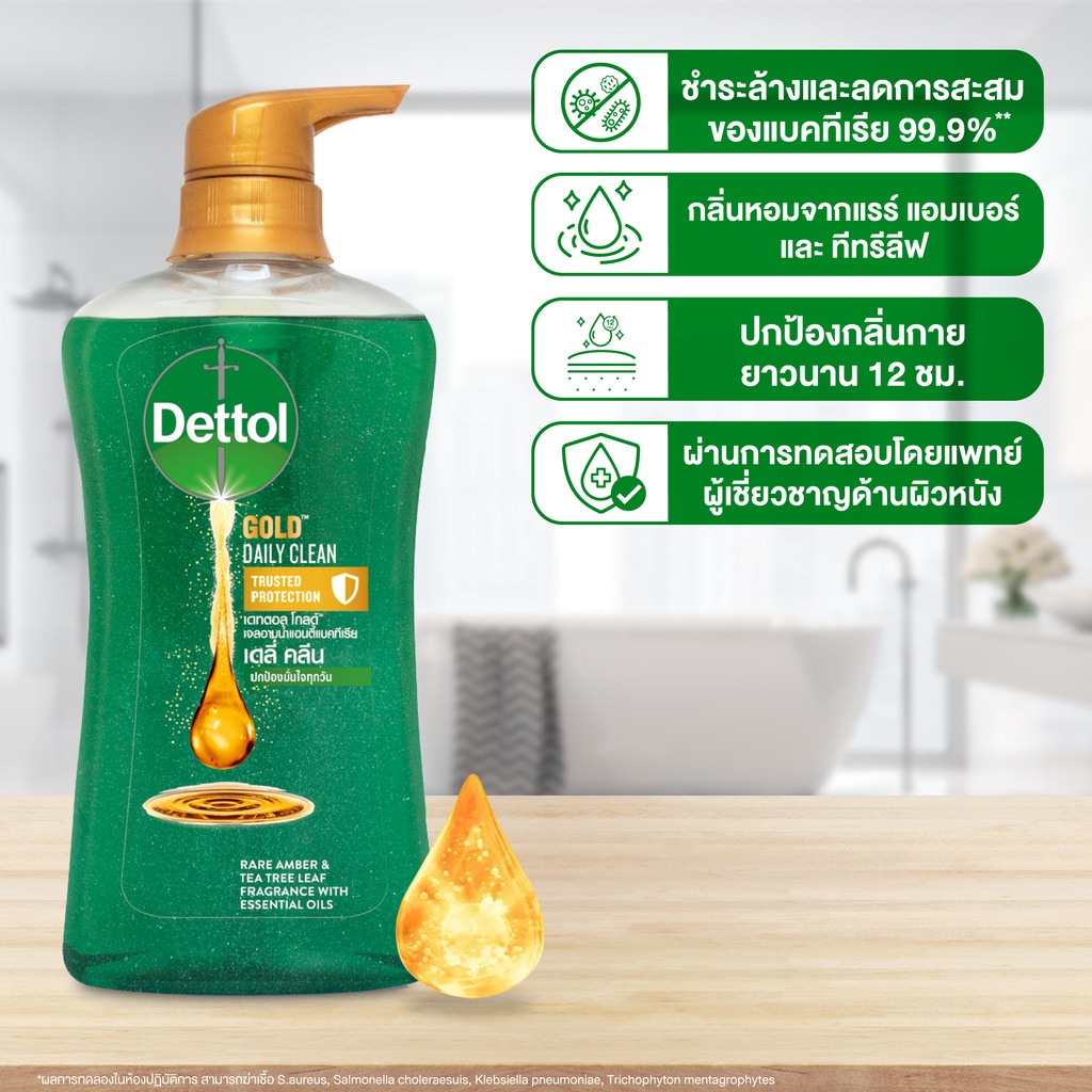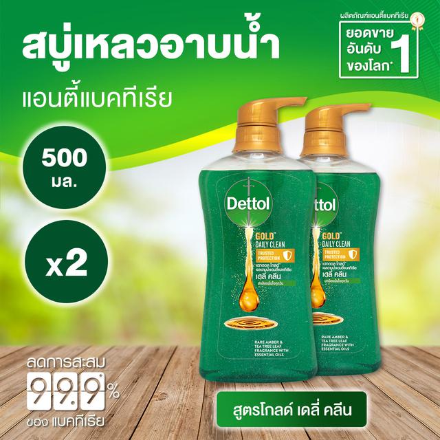 Dettol เดทตอล เจลอาบน้ำ สบู่เหลวเดทตอล แอนตี้แบคทีเรีย สูตรโกลด์ เดลี่ คลีน 480มล.X2