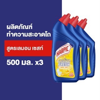 [แพ็ค3] Harpic ฮาร์ปิค ผลิตภัณฑ์ทำความสะอาดชักโครก น้ำยาทำความสะอาดโถ กลิ่นเลมอน 500 มล.