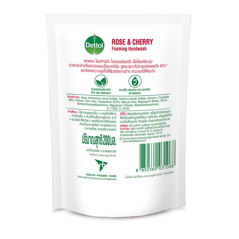 Dettol เดทตอล โฟมล้างมือเดทตอล โฟมล้างมือ ถุงเติม สูตรโรสแอนด์เชอร์รี่ 200มล.X10