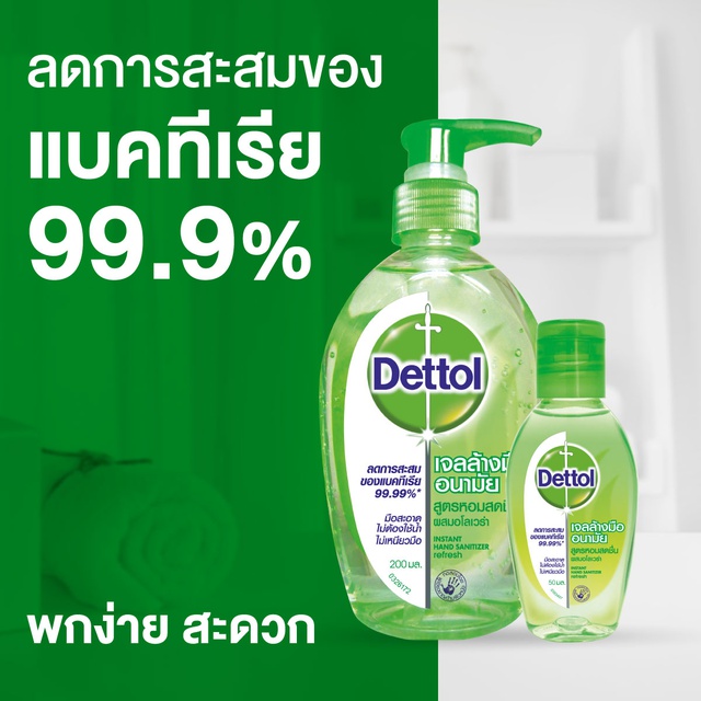 Dettol เดทตอล เจลล้างมือเดทตอล เจลแอลกอฮอล์ล้างมือ สูตรหอมสดชื่นผสมอโลเวล่า 50มล.X12
