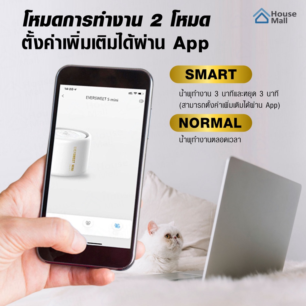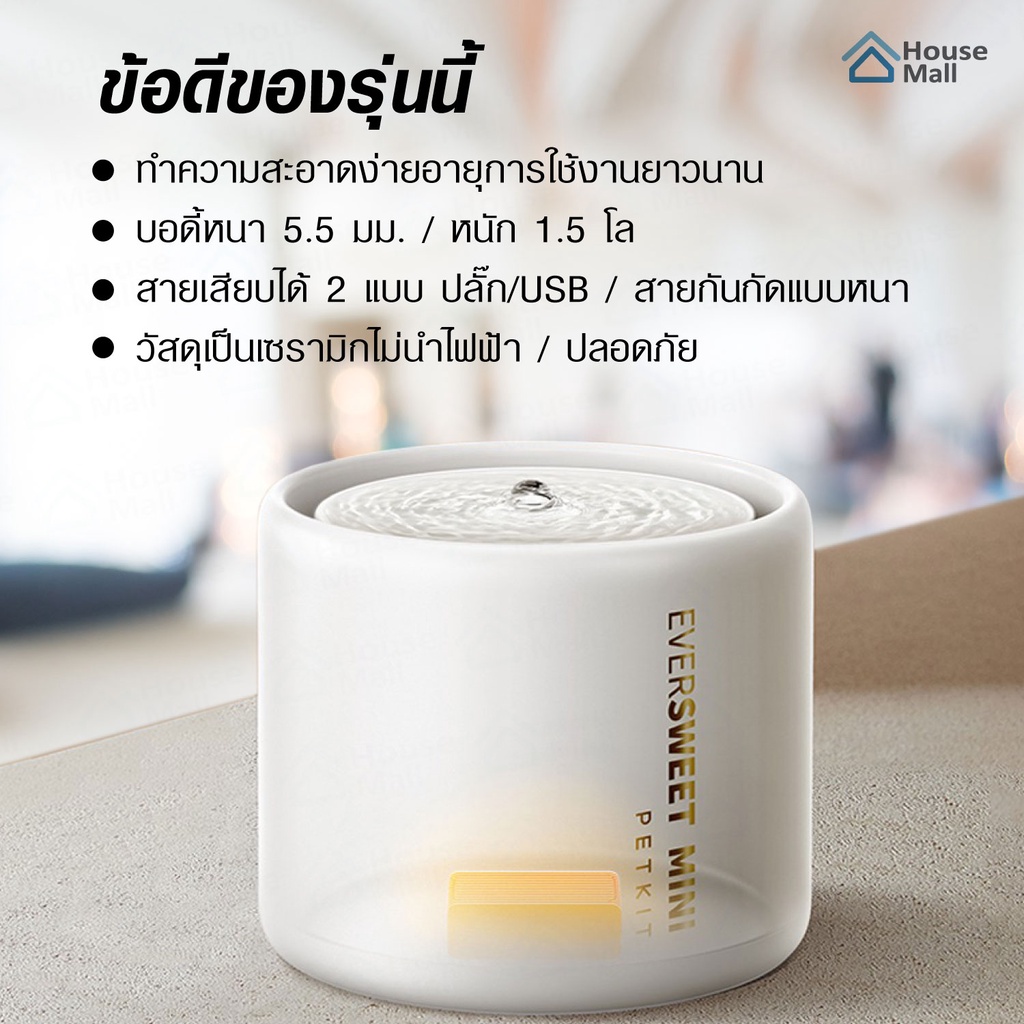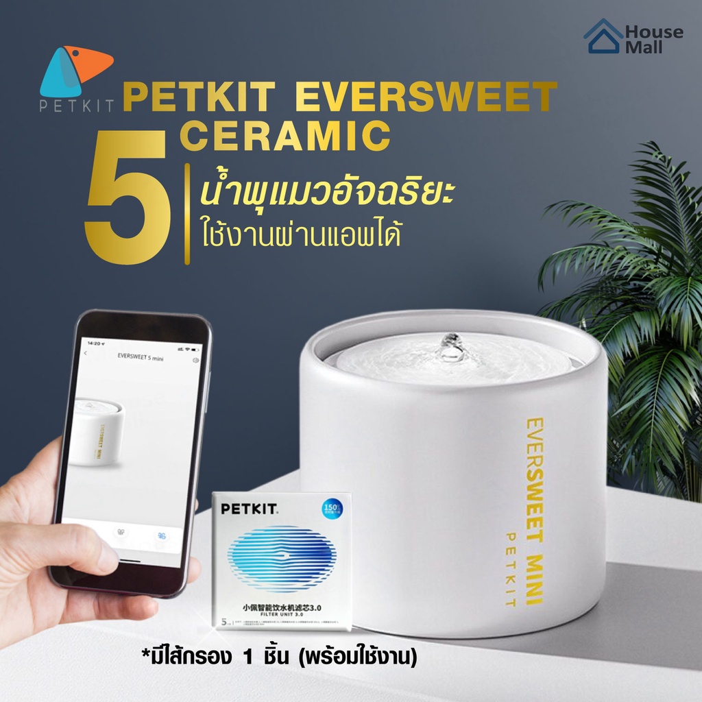EVERSWEET 5 น้ำพุแมวรุ่นใหม่ล่าสุด ถังทำจากเซรามิคหนา เชื่อมแอพได้ ขนาด 1L / 2L เก็บอุณหภูมิได้ดีป้องกันแบคทีเรีย