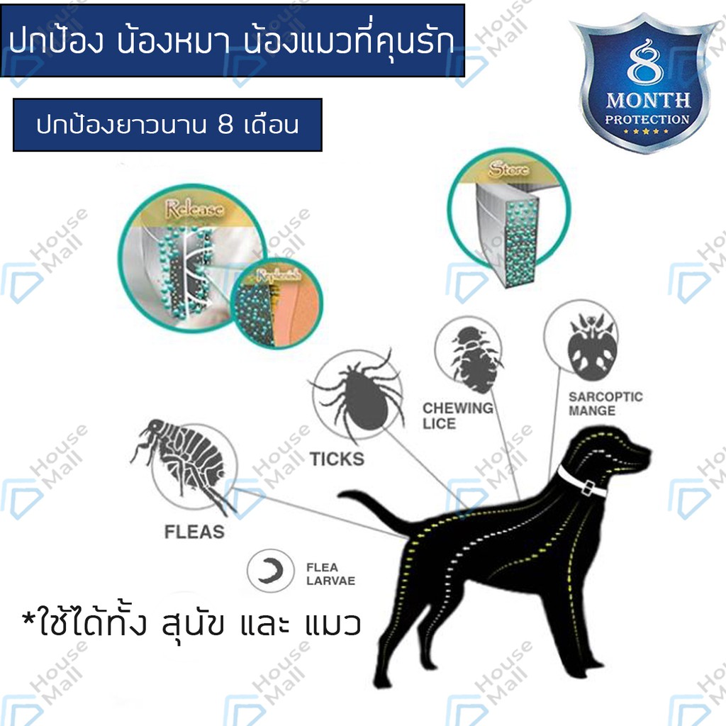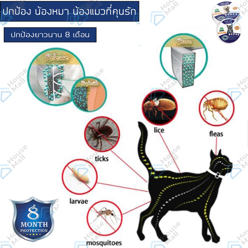 ปลอกคอกันเห็บ หมัด ยุง สุนัข แมว กันน้ำ ป้องกัน 8 เดือน Flea and tick collar