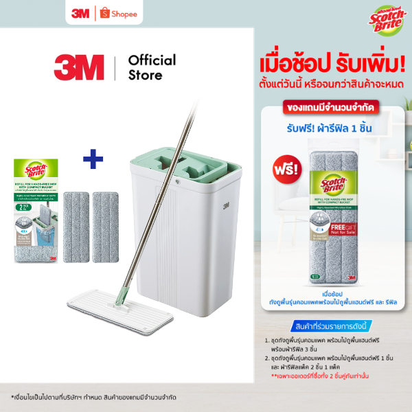 3M™ Scotch-Brite™ สก๊อตช์-ไบรต์ ชุดถังถูพื้นรุ่นคอมแพค , พร้อมไม้ถูพื้นแฮนด์ฟรี