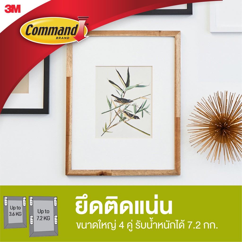 3M™ Command™ คอมมานด์ เทปหนามเตยติดกรอบรูป ขนาดใหญ่, สีขาว, รับน้ำหนักสูงสุด 7 กก., 4 คู่/แพ็ค