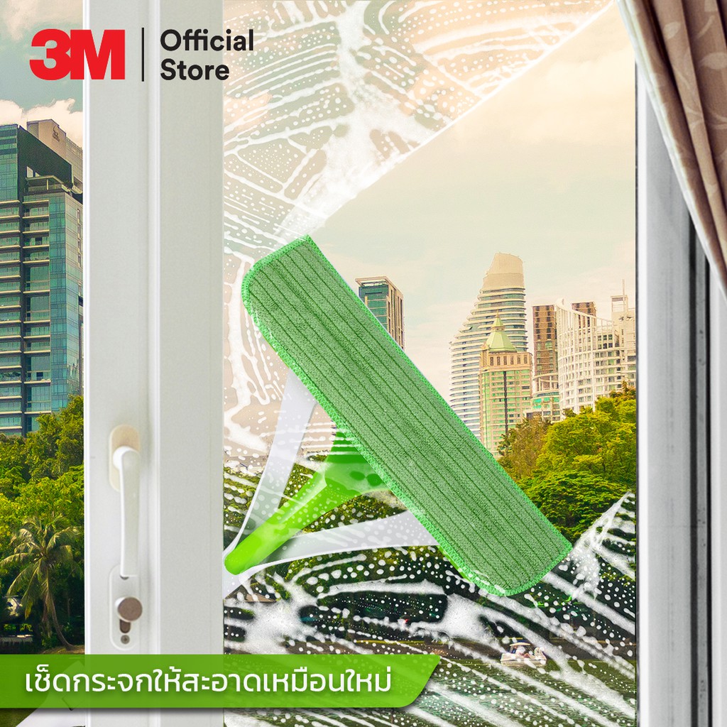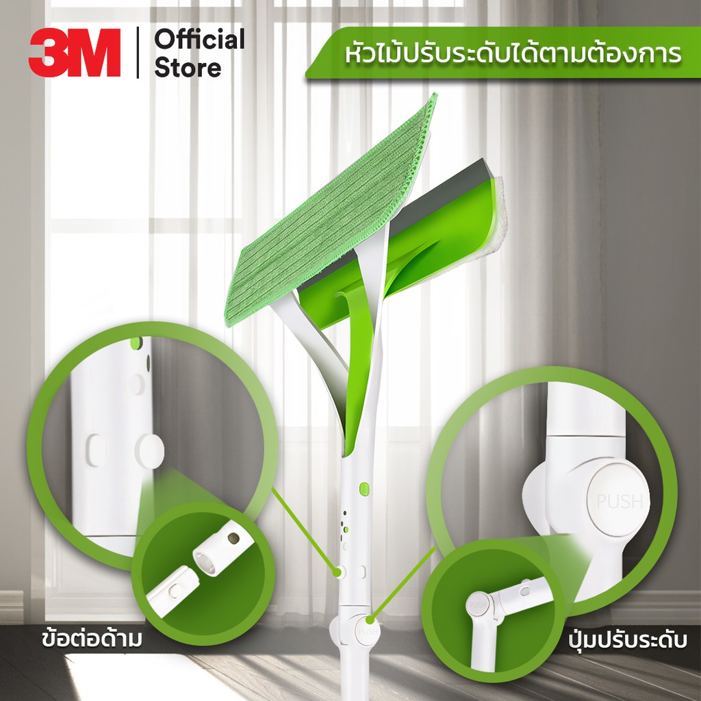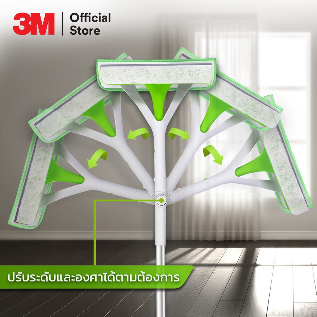 3M™ Scotch-Brite™ สก๊อตช์-ไบรต์ ชุดไม้เช็ดฝุ่นและกระจกปรับองศา, ขัด เช็ด ปาด ในด้ามเดียว, หัวแปรงปรับโค้งงอได้