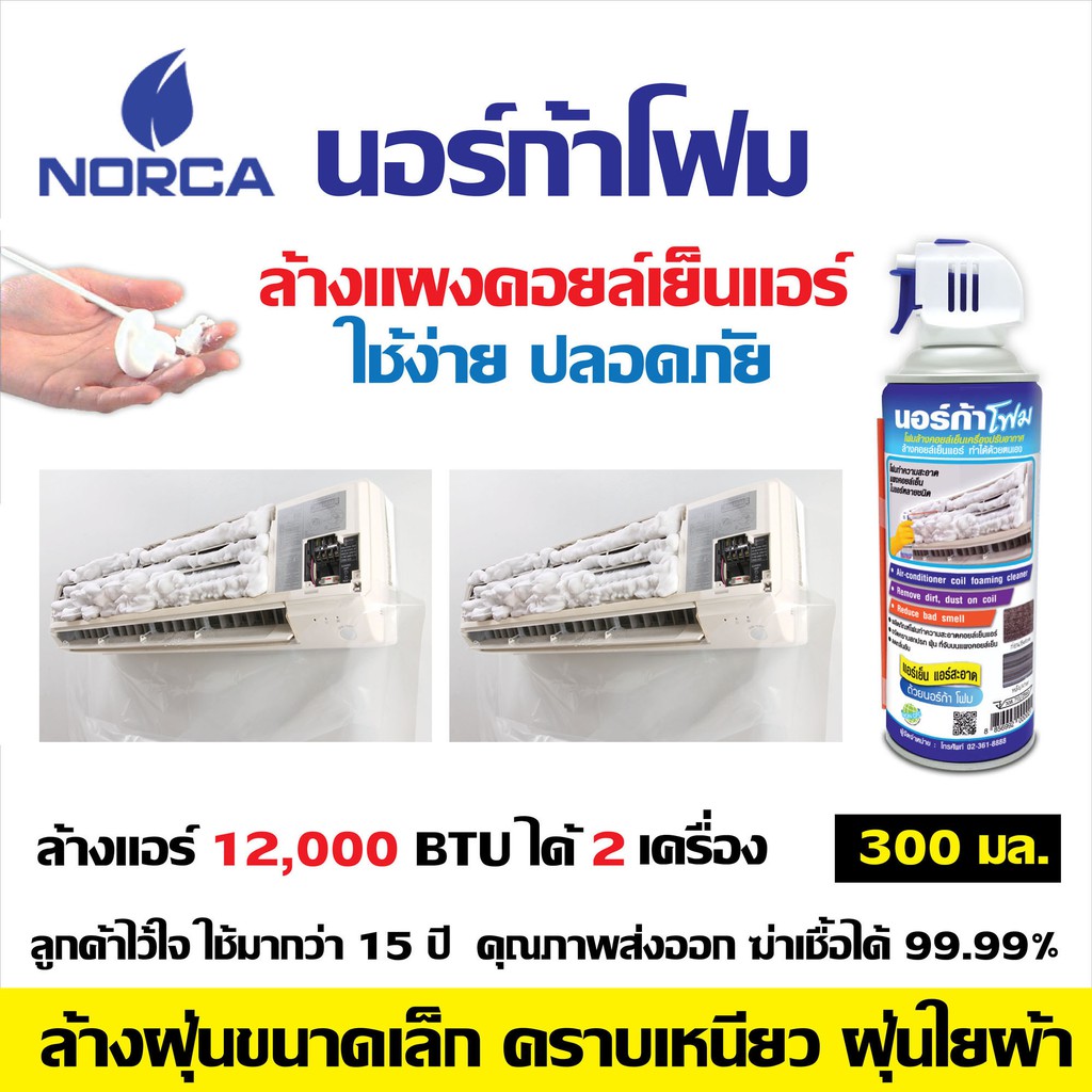 โฟมล้างแอร์ NORCA FOAM ล้างแผงคอยเย็นแอร์ขนาด 300 ml. ใช้ล้างได้ 2-3 ครั้งขนาด 12000BTU