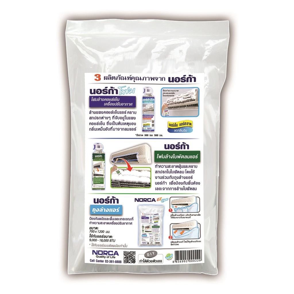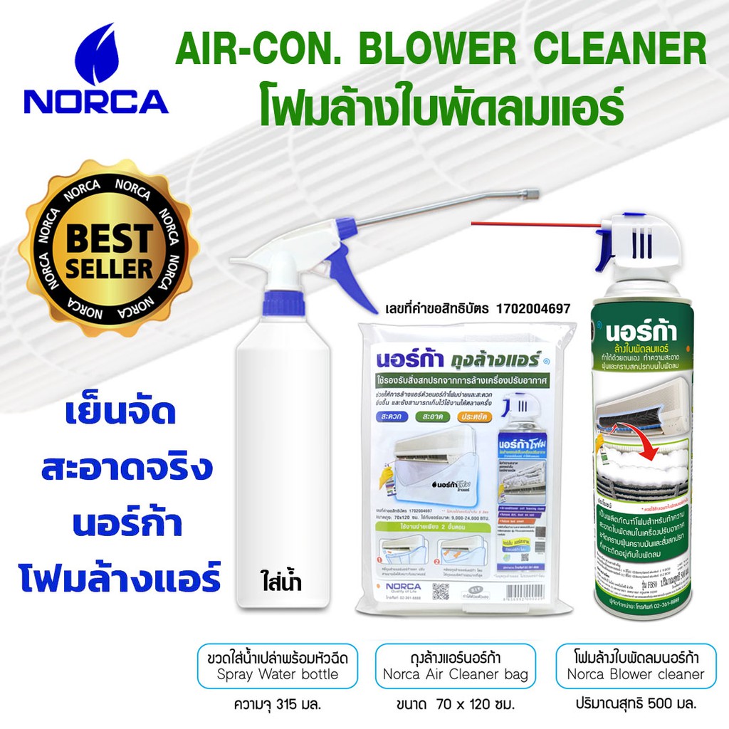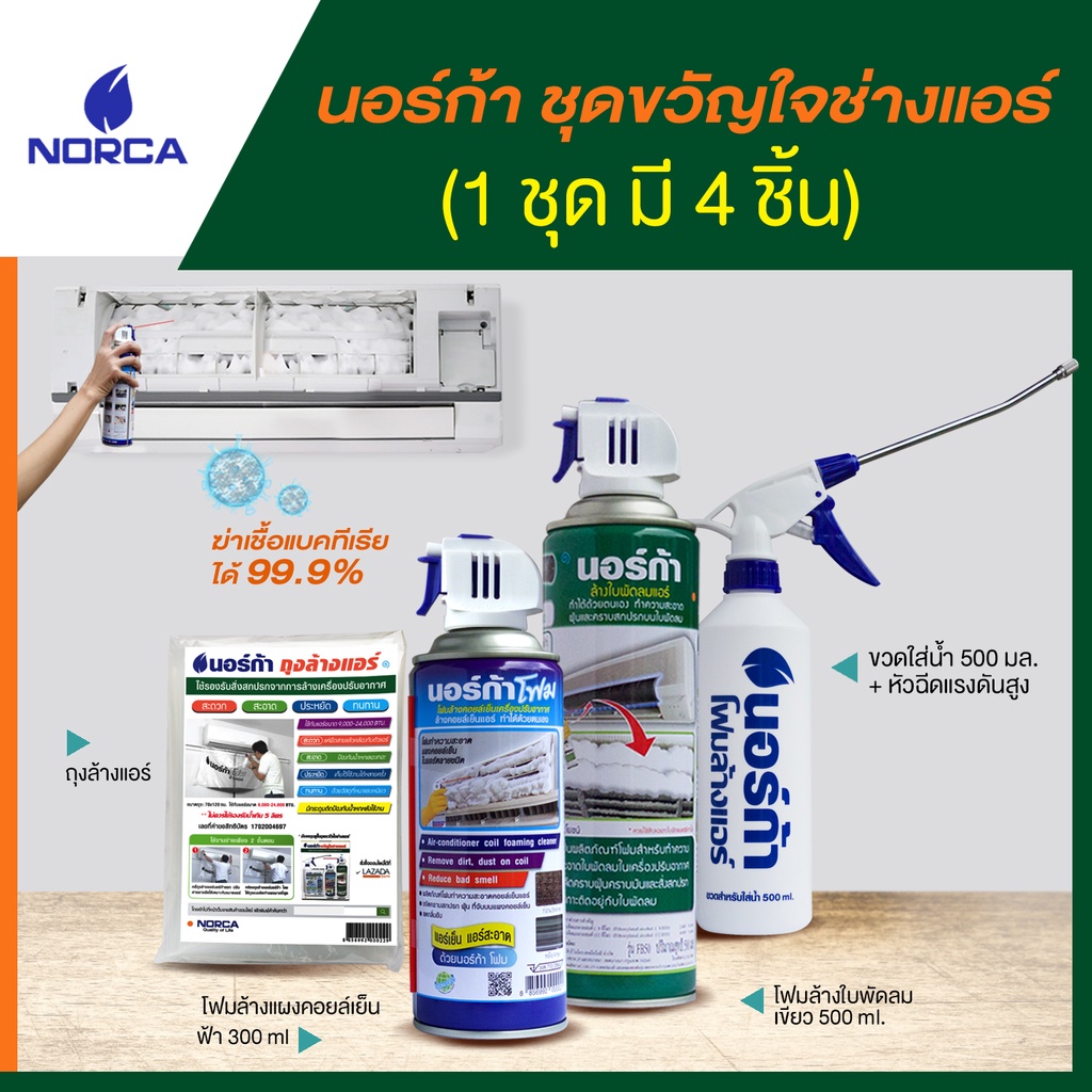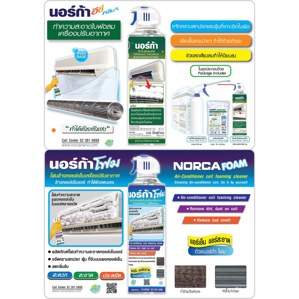 ชุดขวัญใจช่างแอร์ โฟมล้างแอร์ นอร์ก้า ล้างใบพัดลมแอร์+โฟมล้างแผงคอยล์ ช่างไว้ใจใช้มากว่า 21 ปี