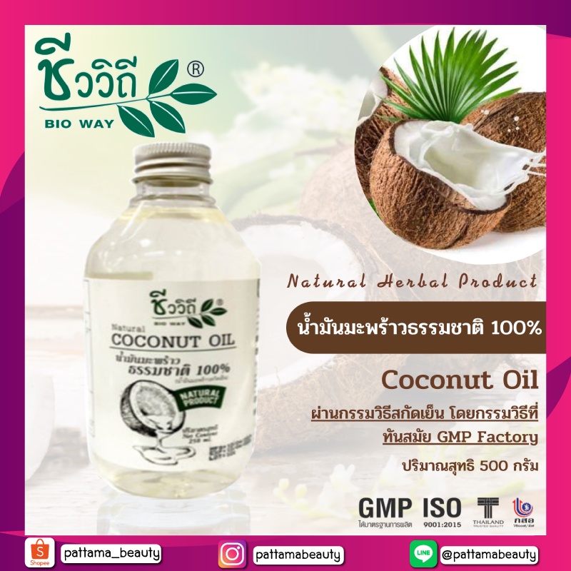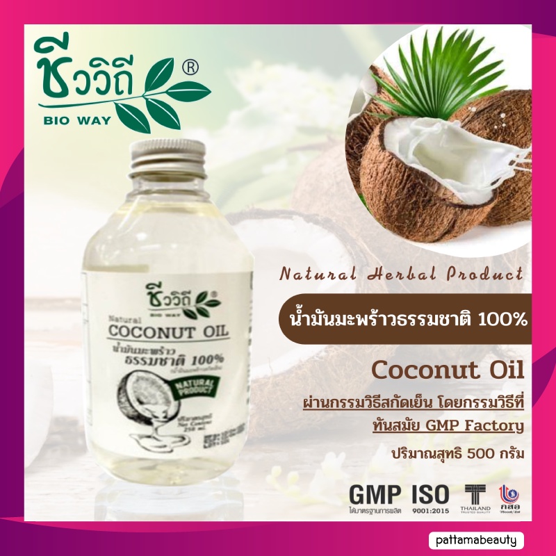 ชีววิถี น้ำมันมะพร้าวสกัดเย็น แบบธรรมชาติ 100% Natural Virgin Coconut Oil 250/500ml.