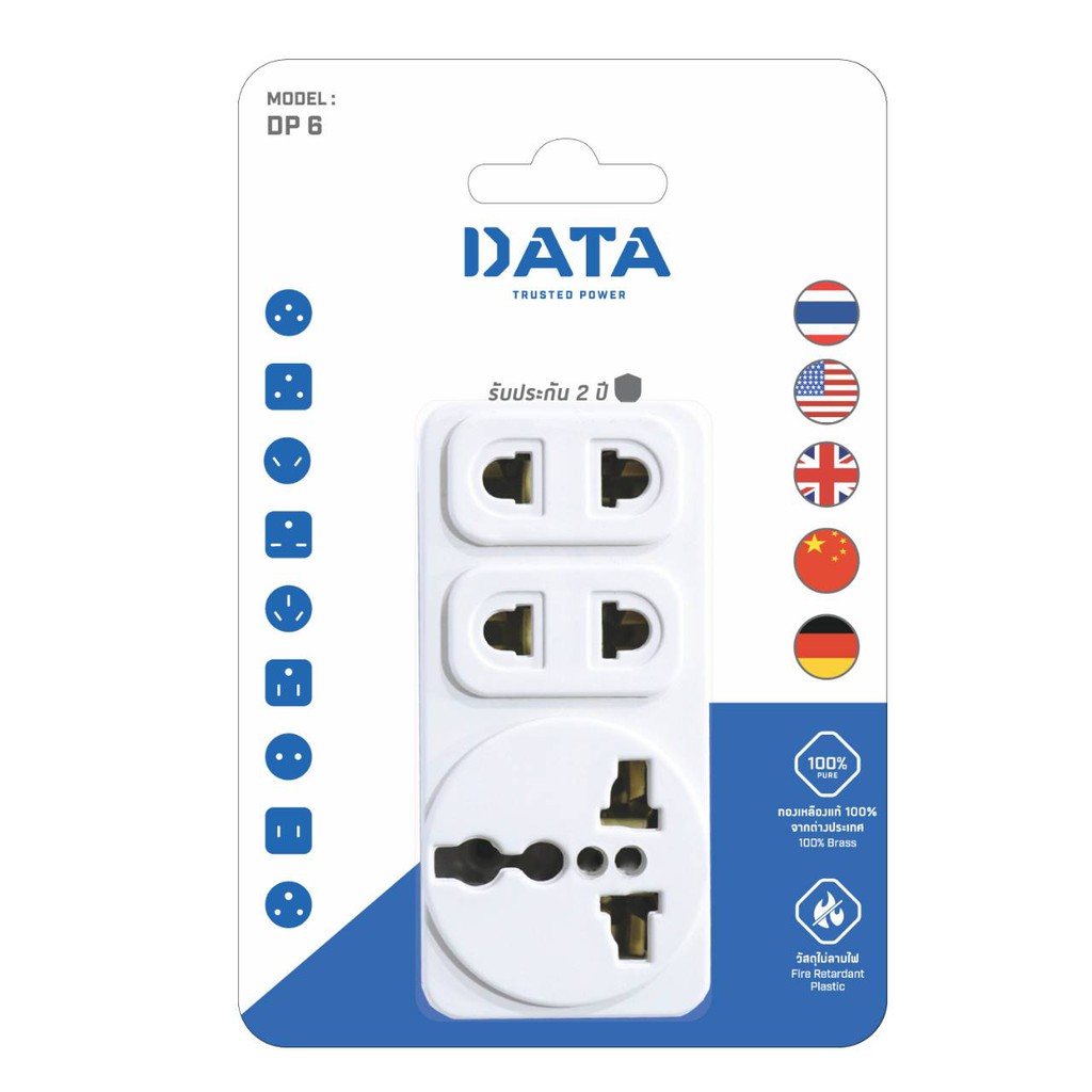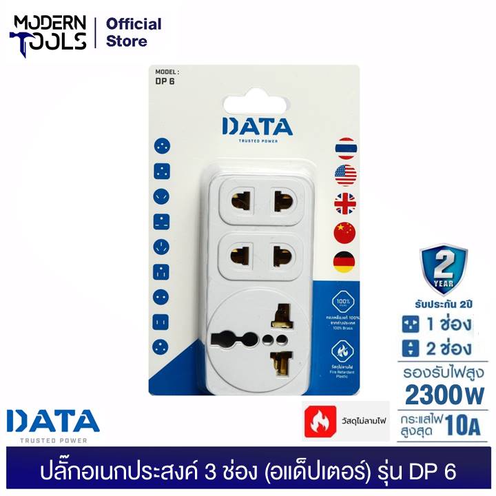 DATA DP6 ปลั๊กอเนกประสงค์ 3 ช่อง เต้ารับอเนกประสงค์ (อแด็ปเตอร์ใช้งานกับหัวปลั๊กประเทศต่างๆ) | MODERNTOOLS OFFICIAL